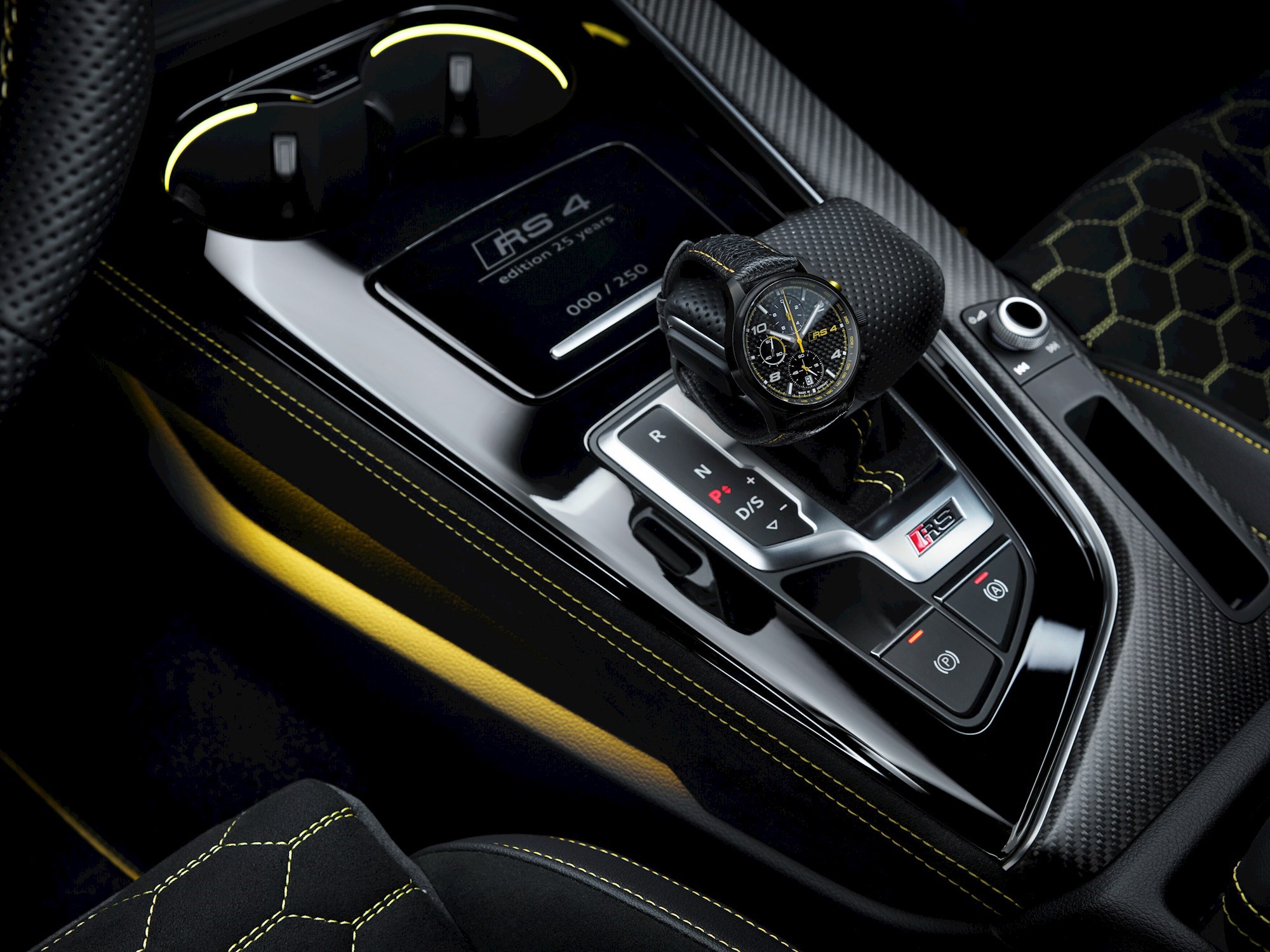 U kabini vlasnika čeka pločica s rednim brojem izvedbe, amblemi specijalne izvedbe, crne prevlake u kombinaciji Alcantare i Dinamice uz žute prošive. Kokpit je digitalan, ali s prikazom po uzoru na originalni RS4 s bijelom podlogom pokazivača.