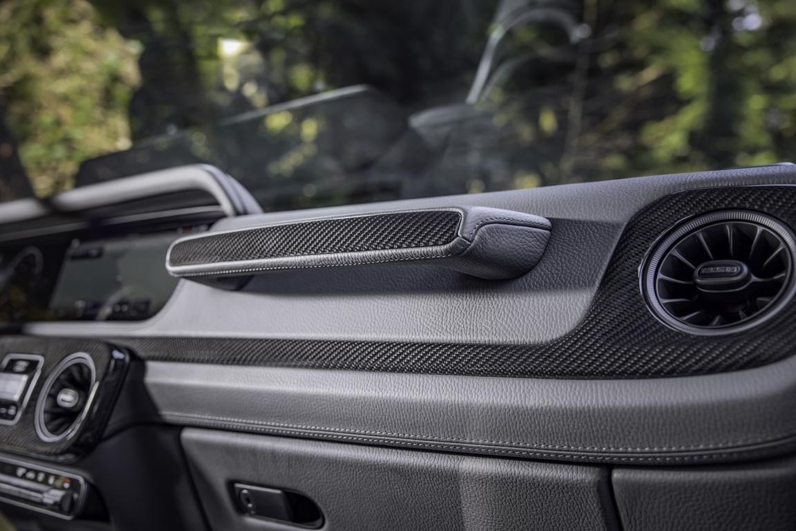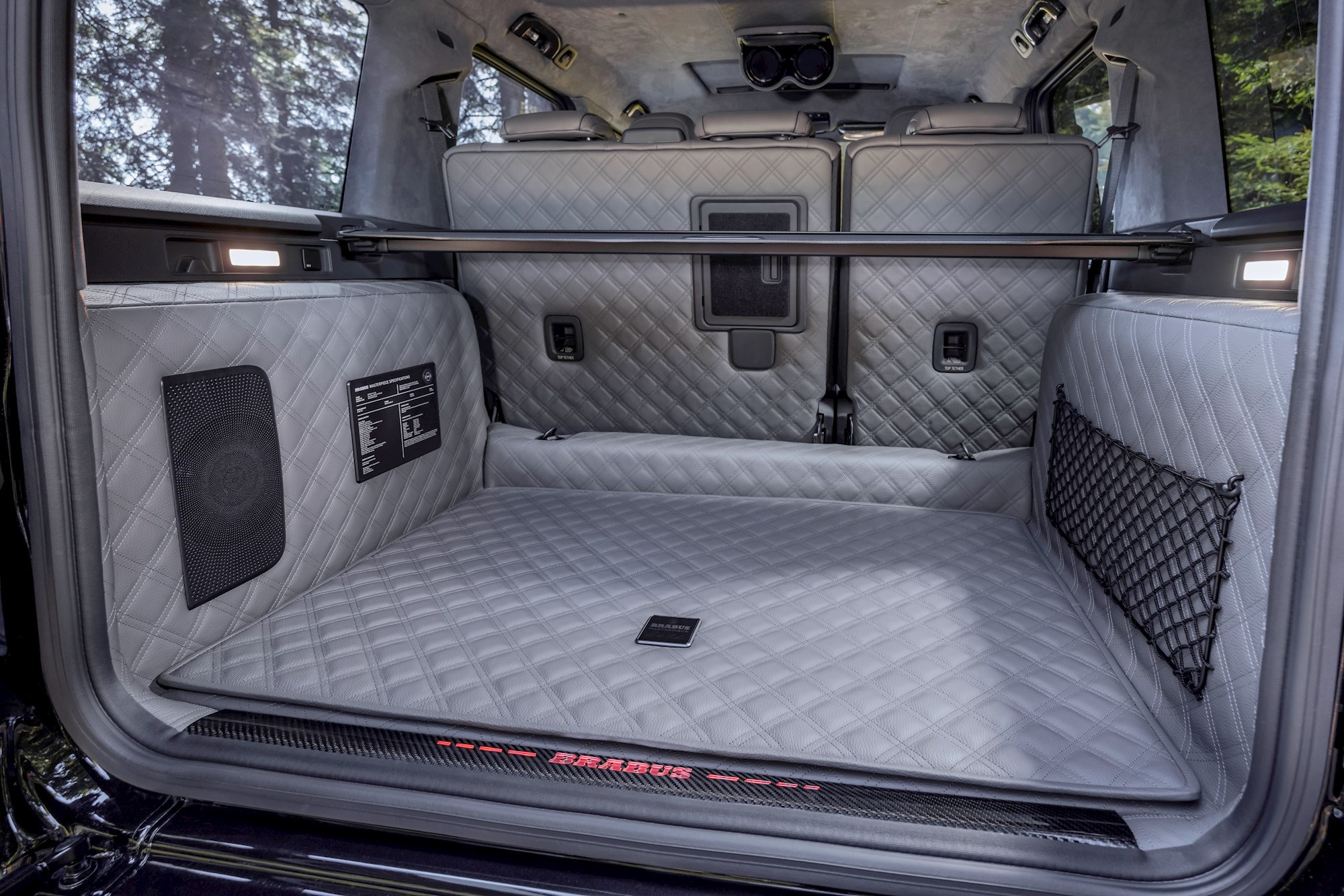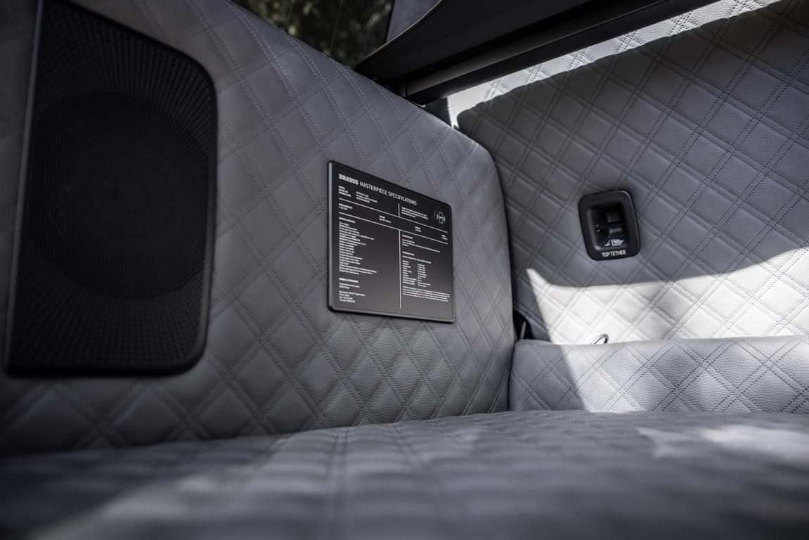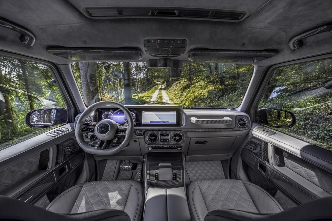 Brabusov novitet je još ekskluzivniji u kabini koja donosi potpis BRABUS MASTERPIECE, a to znači ručna izrada i najbolji materijali. Siva koža s prepoznatljivim “Double Cube” prošivom, elementi od karbona, ambijentalna rasvjeta i sportski detalji poput aluminijskih papučica i LED osvijetljenih pragova čine da se osjećate kao u kabini privatnog mlažnjaka. Sjedala su perforirana za bolju ventilaciju, a na krovu se nalazi dodatni instrument za stražnje putnike – koji pokazuje brzinu, vrijeme i datum.
