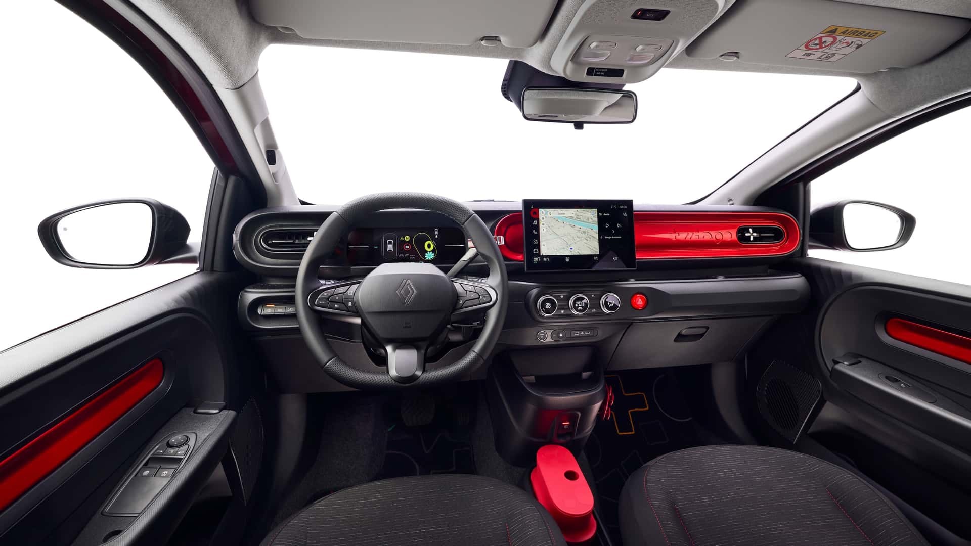 Digitalni kokpit uključuje 7-inčni zaslon instrumenata i 10-inčni središnji ekran s podrškom za Google Maps i Google Assistant na bogatijim verzijama. Twingo ima i virtualnog pomoćnika Renoa, koji pomaže s informacijama o punjenju i odgovara na pitanja poput digitalnog francuskog Jeevesa, dok elektroničku dobrodošlicu pruža glazba Jean-Michela Jarrea.