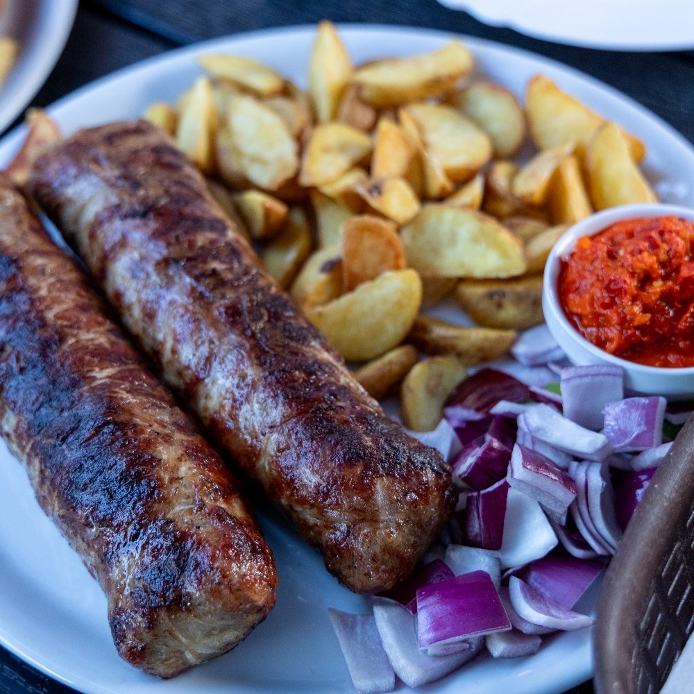 Ćevapi su punjeni gauda sirom i mozzarellom. U jednoj porciji dobijete dva ogromna ćevapa te za prilog pekarski krumpir, ajvar, crveni luk i dvije lepinje. Tekstura ćevapa je blago gumenasta, a sira ima više nego mesa. Sve je jako fino, nije nimalo masno. Oduševio nas je i okus lepinja koje su pečene na masti od mesa. Milina!