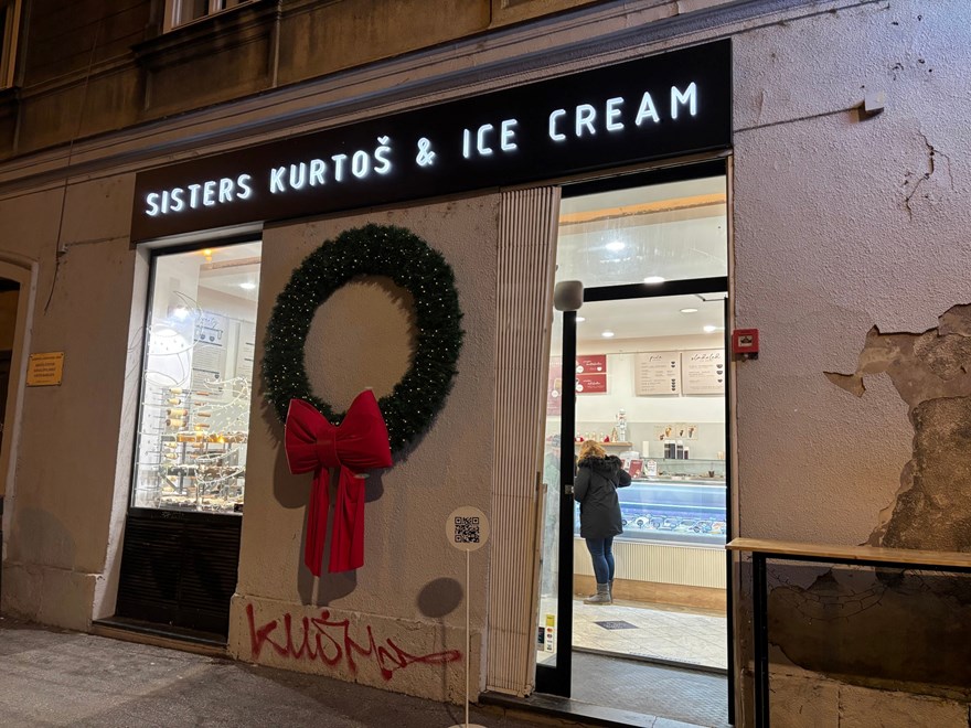 Posjetila sam Sisters Kurtoš u petak popodne, kad se polako spuštao sumrak, adventska atmosfera na Zrinjevcu bila je u punom zamahu, a gužve oko lokala sve izraženije. Od kad je Advent počeo, velik broj ljudi koji šeta duž Zrinjevca čini prirodan zaobilazak upravo prema ovom lokalu. Mnogi zastaju pred izlogom, gledaju kako se kurtoši peku i odlučuju stati na trenutak - posebno turisti. Sisters Kurtoš nalazi se na adresi Milana Amruša 1 na samom kraju Zrinjevca, preko puta poznate Ruže vjetrova.