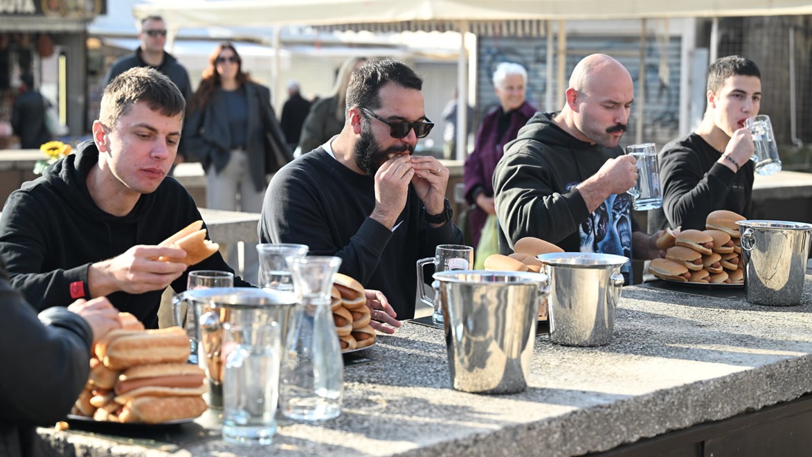 NA SPLITSKOM Pazaru održano je natjecanje Hot Dog Eating. Kao što sam naziv kaže, Splićani su se natjecali u jedenju hot dogova, a organizator je Gudin Pigeria. Zadatak je bio jednostavan - pojesti što više hot dogova u sedam minuta.