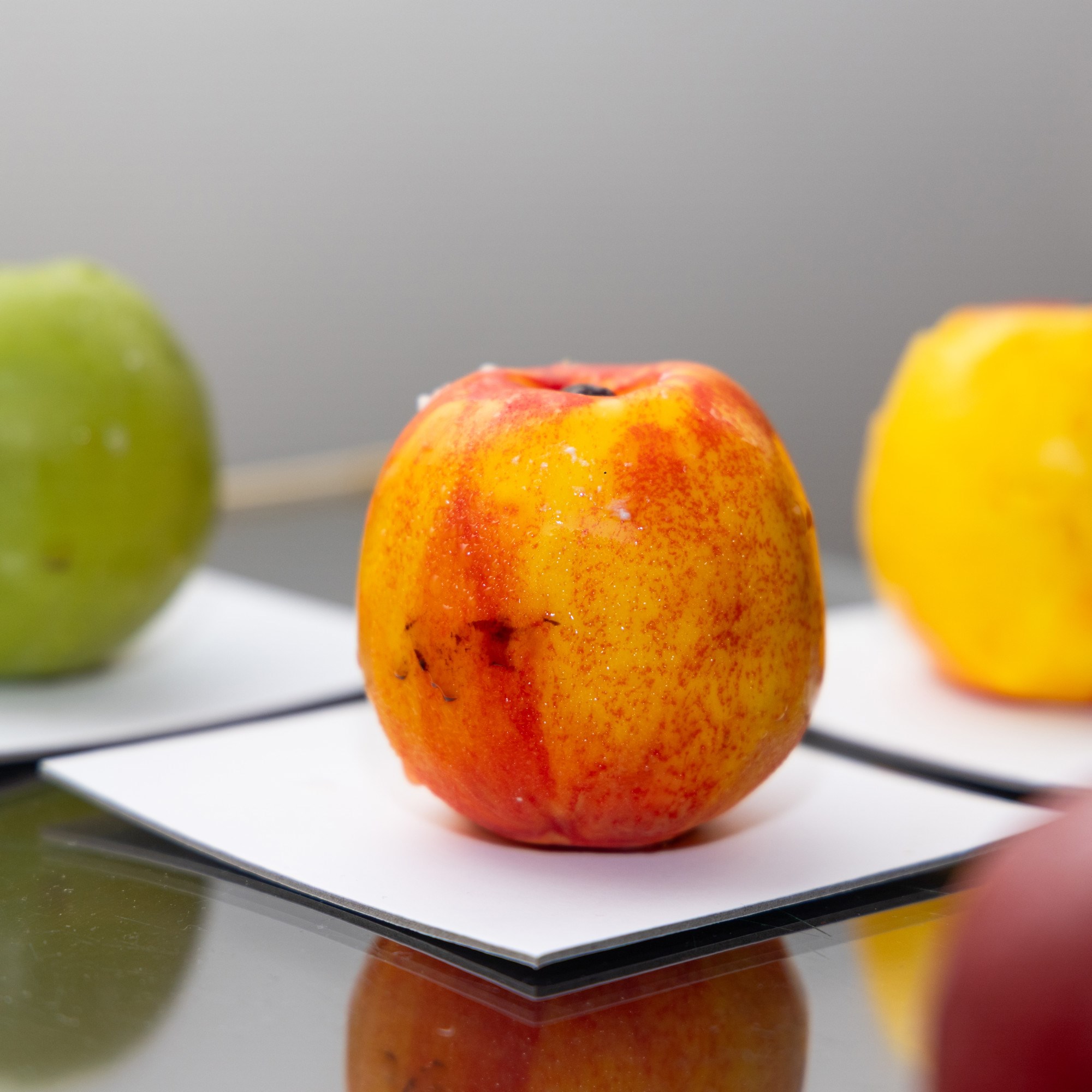 Probali smo više voćki - vizualno ludo, okusi odlični. Zelena jabuka imala je okus kao savršen nadjev za pitu od jabuka. Višnja je okusom bogata, kiselkasto-slatka kakva u stvarnosti i jest. Kruška/passion fruit okusom je nešto blaža verzija voćnog deserta, teksturom kremasto i sve lijepo balansirano.Hit kućica za ljubitelje slastica.