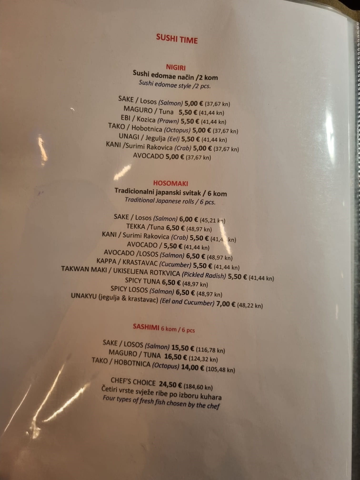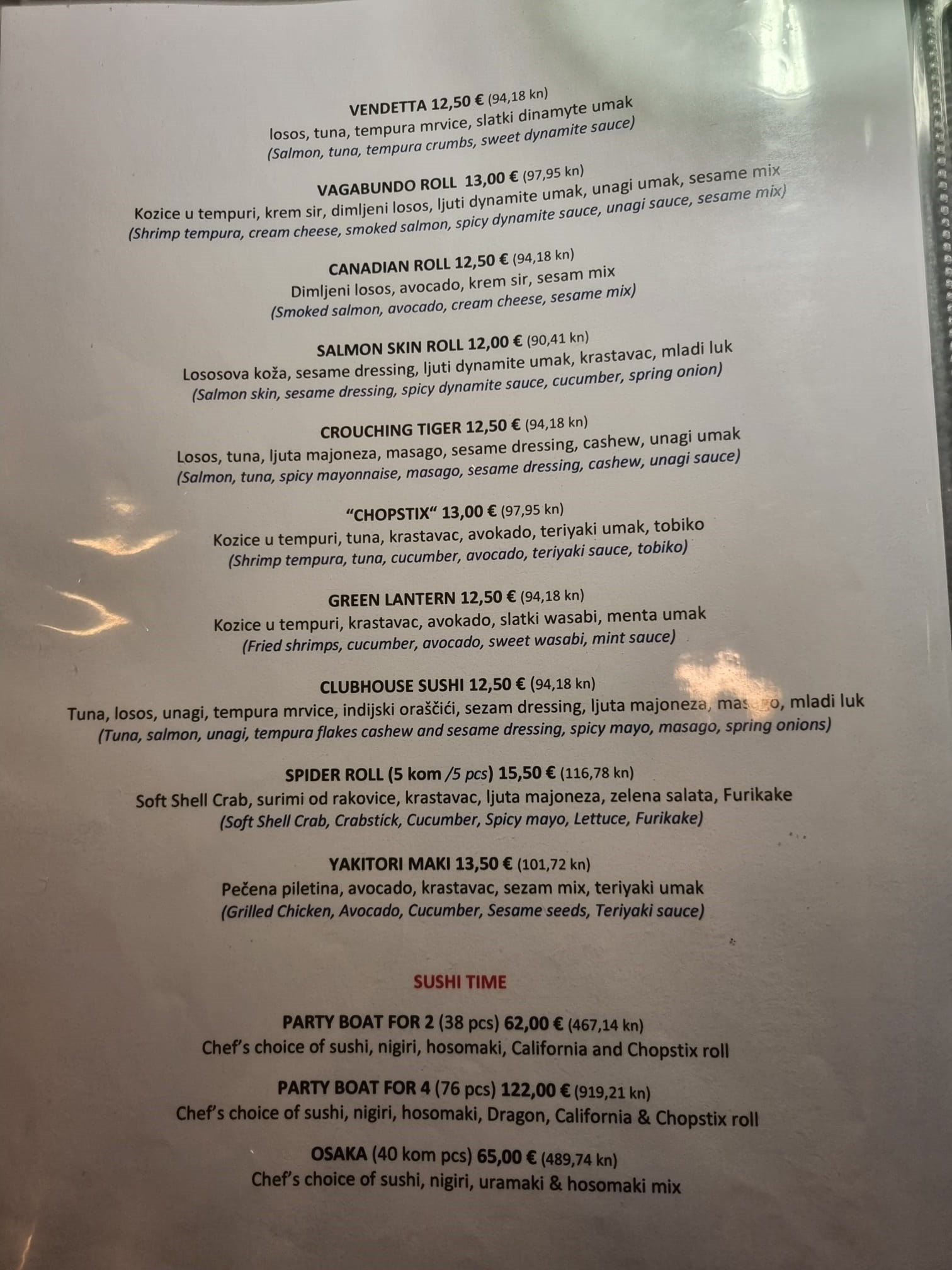 Vlasnik je, rekli su nam, proputovao pola svijeta i nevjerojatno je zanimljiv tip, a originalno je Chopstix s Brača, gdje i dan danas imaju lokal ljeti. Glavni kuhar je Filipinac, drugi Japanac, a tri pomoćna isto s Filipina. Stalno kreiraju nešto novo, govore nam. I kako onda da ne odemo, kad svako malo slušamo ovo.