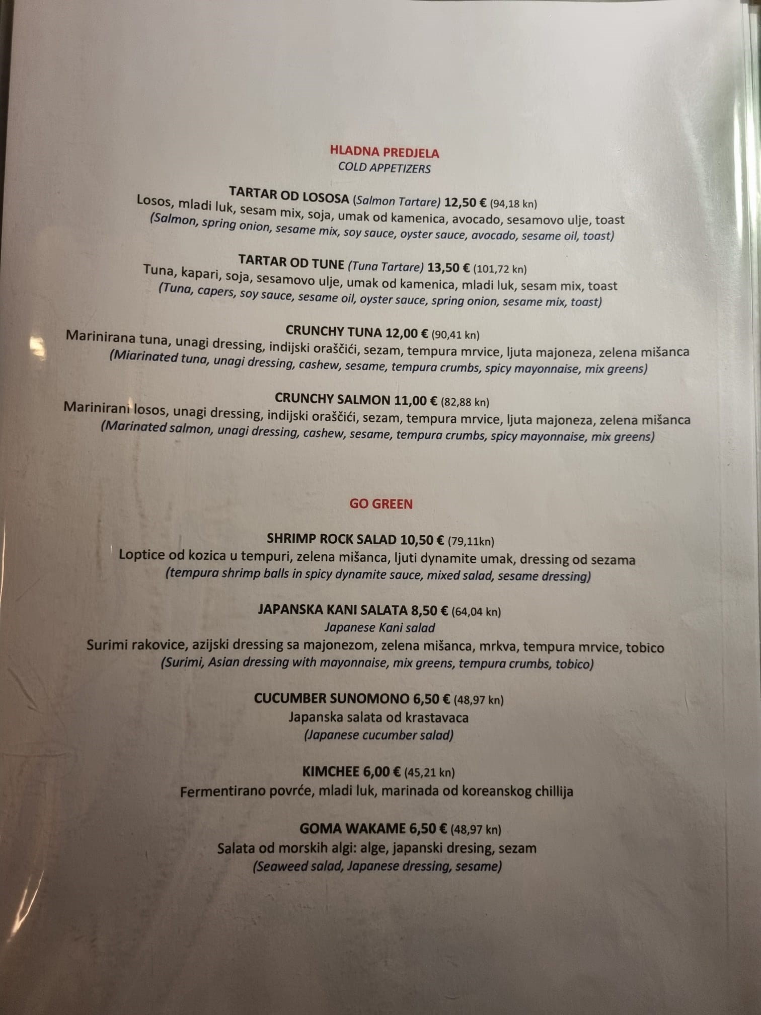 Idući put svakako planiramo probati "sirove" rolice s jelovnika, s obzirom na to da su nam takve ipak draže kad je o sushiju riječ, a vi, volite li pohano, slobodno probajte ove s tunom ili lososom, mogle bi vam dobro sjesti.