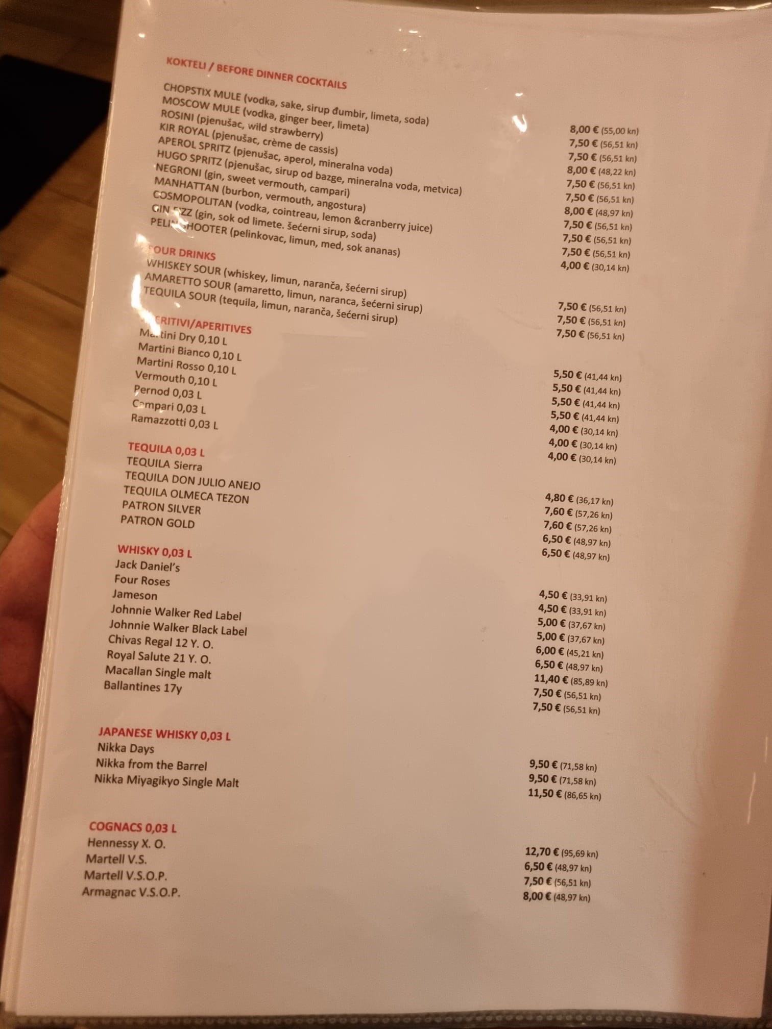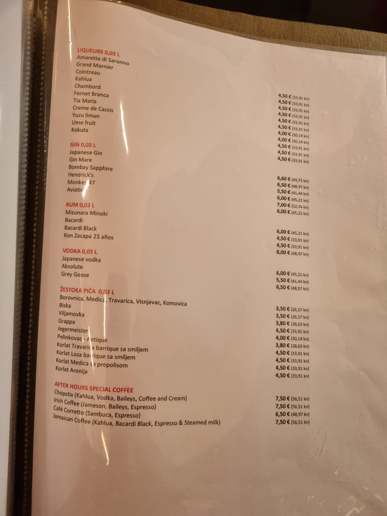 Sve skupa koštalo nas je 65 eura, što nam se čini korektno (pili smo tek mineralnu). Veliki plus ide izrazito pristupačnim zaposlenicima, kao i atmosferi koja je ugodna i nimalo uštogljena, i ne možemo ne primijetiti vrlo dobro isplaniranu rasvjetu u prostoru, koja daje mrvicu intiman, topao ugođaj.