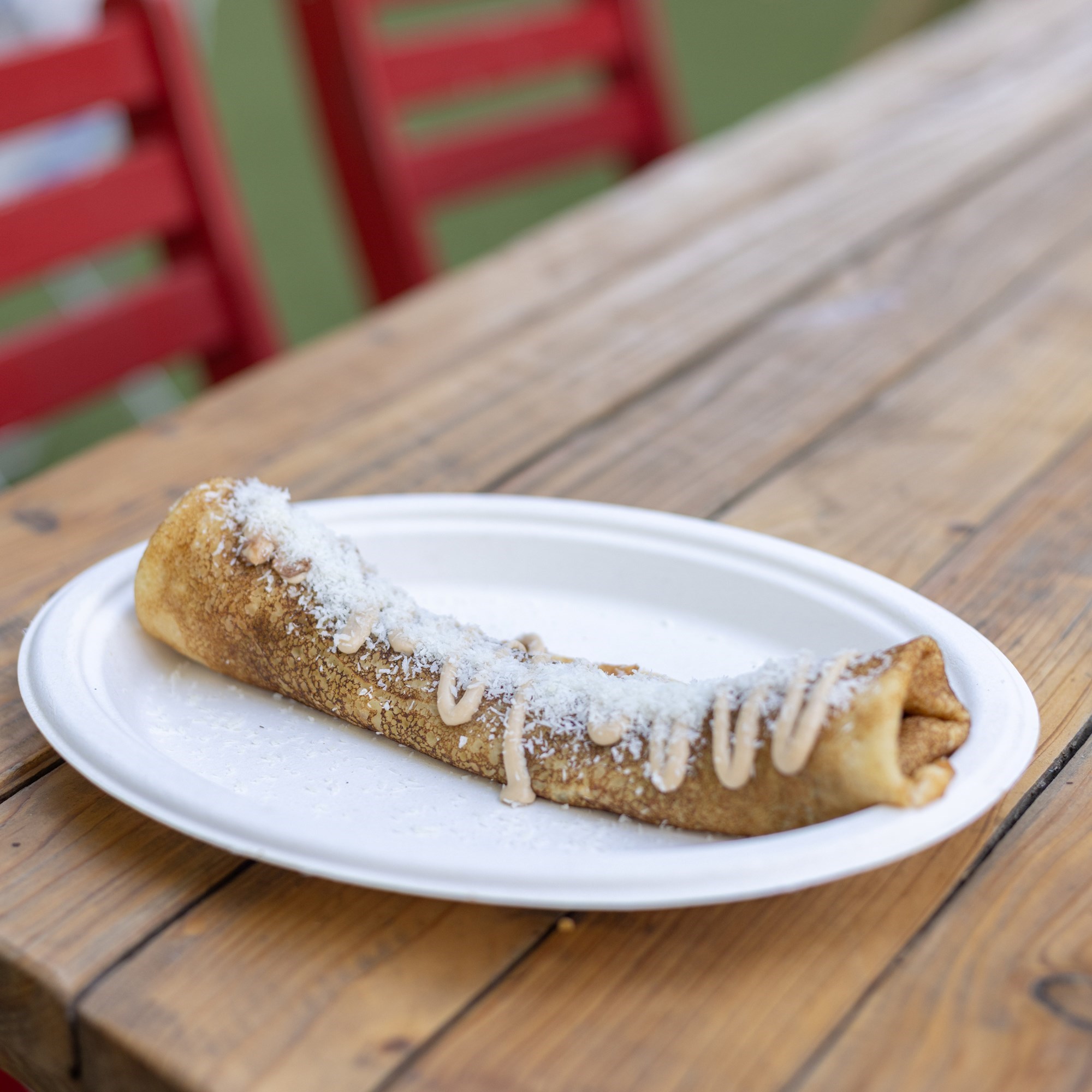 Mi smo isprobali onu s Lino Ladom Gold i s kokosom i ne možemo se odlučiti koja nam je bolja. Palačinka je baš kakva treba biti, bogata je namazom, a mi bismo preporučili da ju ostavite za kraj jer će vas jedna poprilično zasititi. Također, na dan otvorenja na ovoj je kućici bila poprilična gužva, pa se na palačinke čekalo desetak minuta.