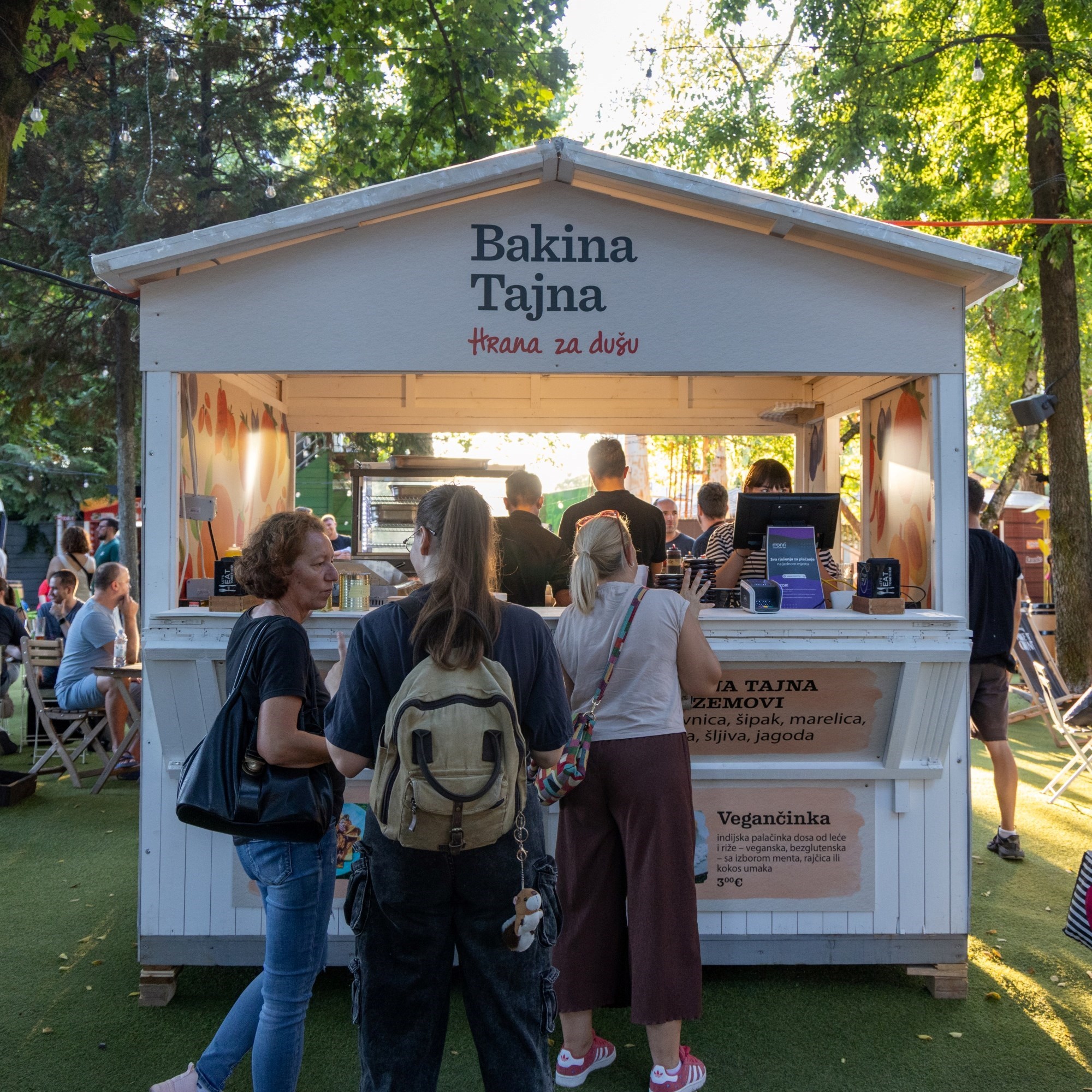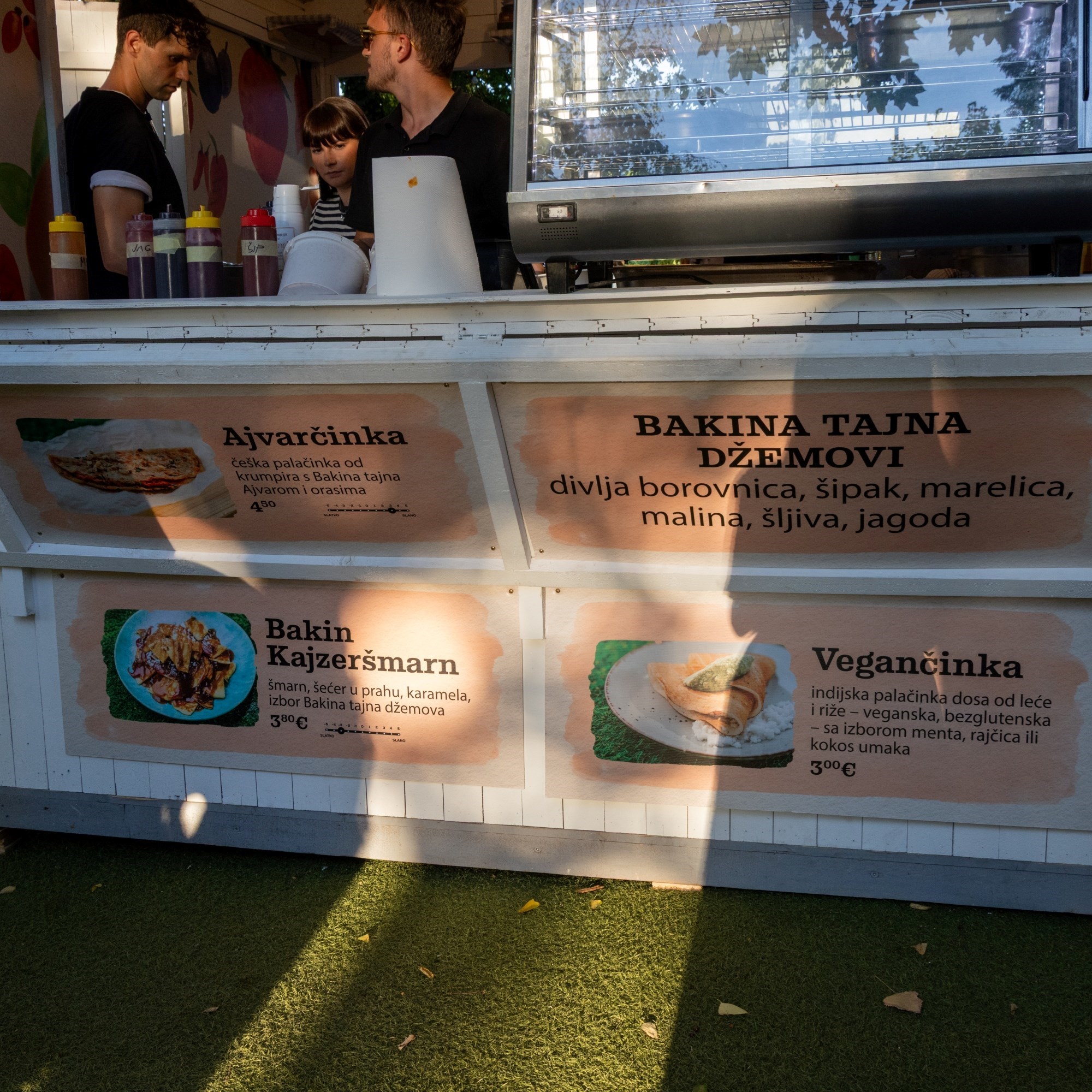 Kućica Bakina tajna u ponudi ima dvije slane palačinke - prošlogodišnji hit ajvarčinku i vegansku palačinku - vegančinku. Od slatkih zalogaja tu je jedan novitet - Bakin kajzeršmarn. Ajvarčinka je zapravo češka palačinka od krumpira, punjena ajvarom i posipana orasima, a cijena joj je 4.50 eura.