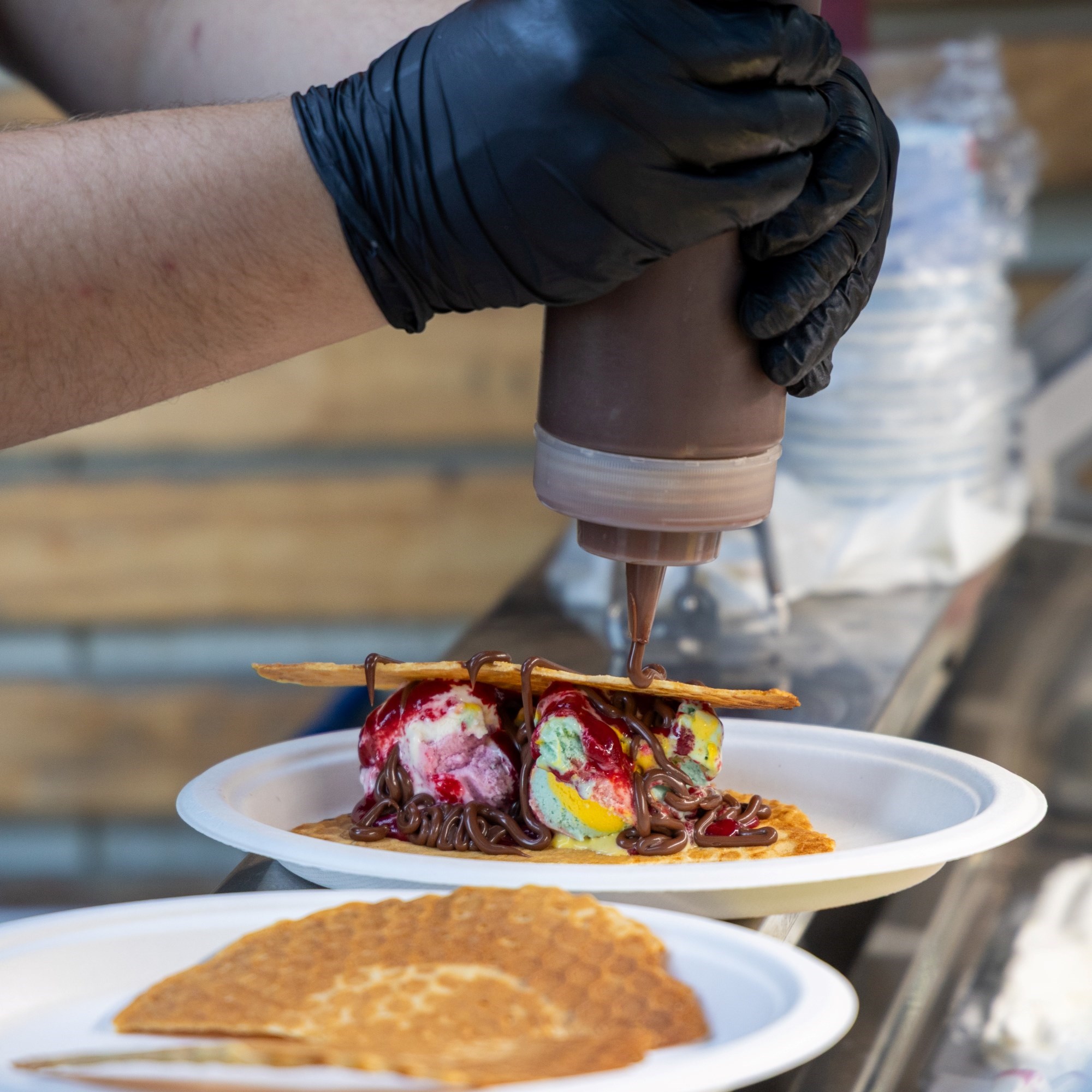 Zbog sladoleda i preljeva desert je pomalo nespretan za konzumaciju, pa savjetujemo da prvo rukom pojedete gornju palačinku-kornet, a tek onda sladoled. Prava ljetna kombinacija s poznatim okusima koja nas je, još jednom, vratila u djetinjstvo.