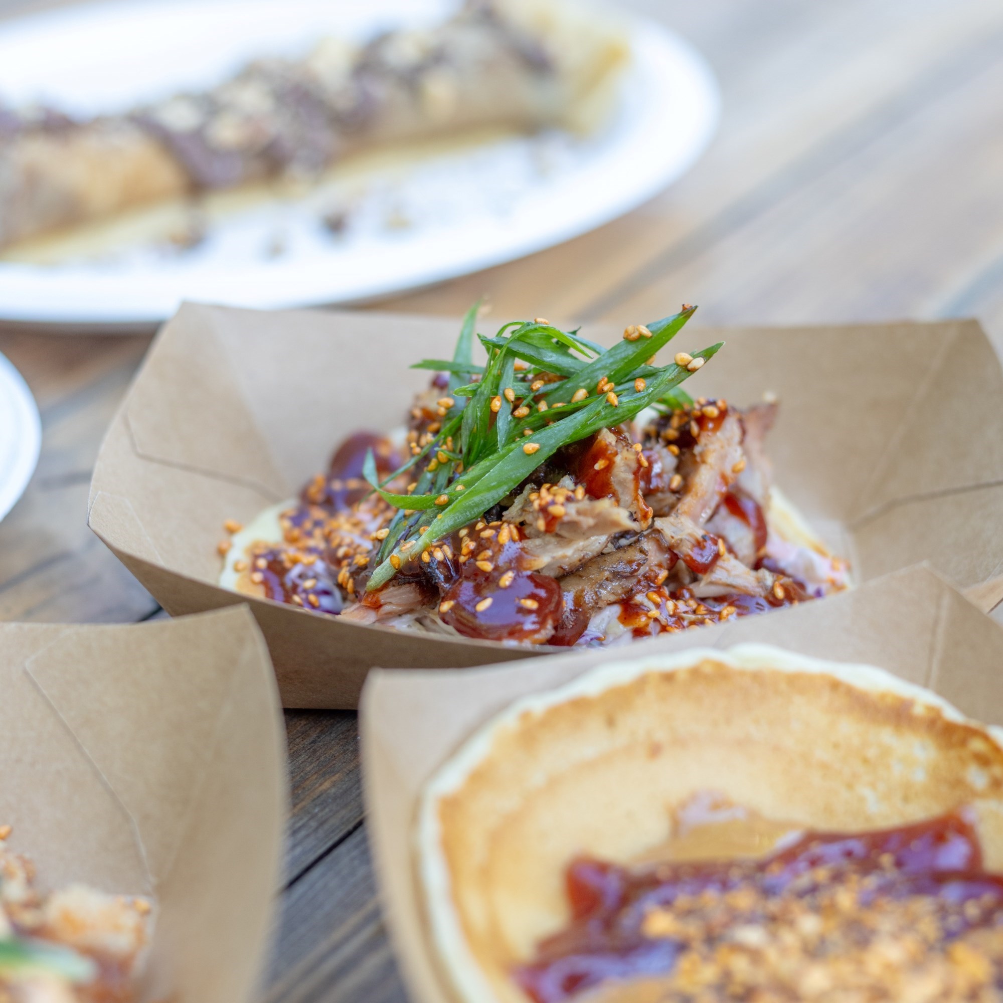Prva nam je kućica bila Metro koji su svoju ponudu bazirali na američkim klasicima. Na meniju je Texas, američka palačinka s pulled porkom, sriracha majonezom, zelenom salatom, jalapeno papričicama i kimchijem, a cijena joj je 3.20 eura. San Diego (naš favorit) su palačinko taquitosi s piletinom pohanom u panko mrvicama, tonkatsu umakom, srirachom i kimchijem. Cijena joj je 3.80 eura.