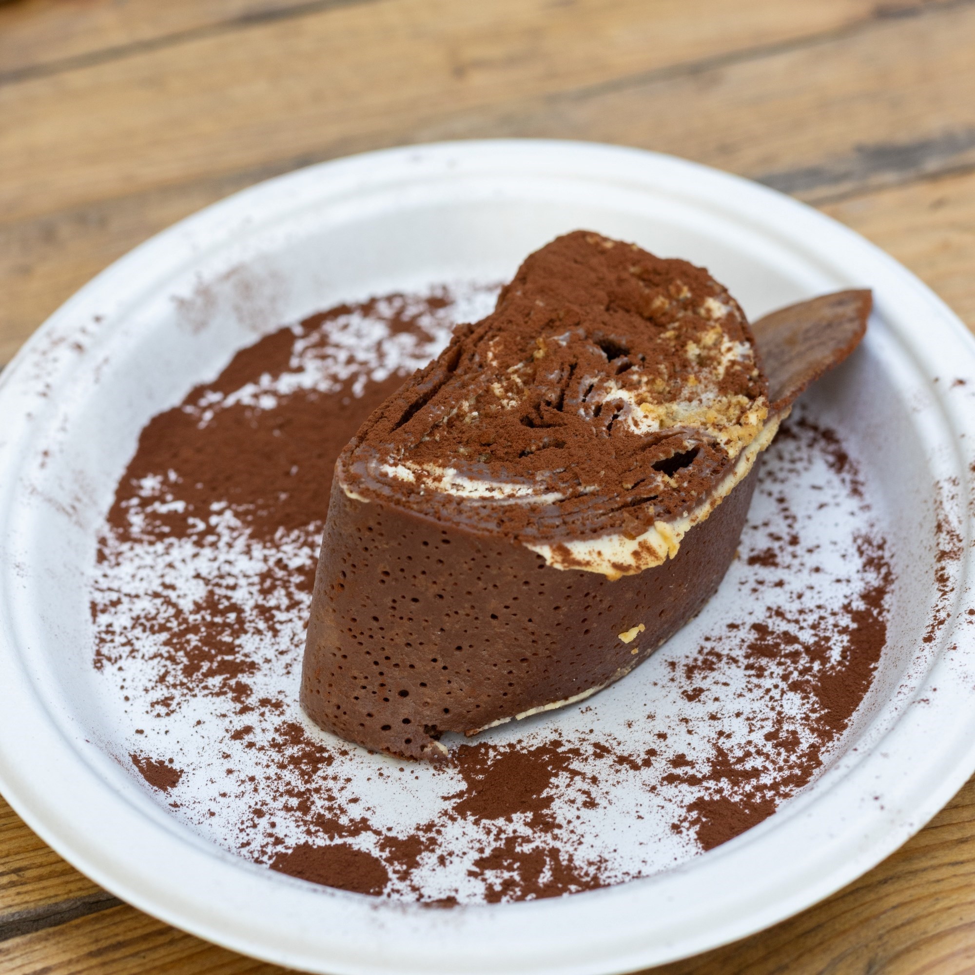 Tiramisu rolada sastoji se od čokoladnih palačinki punjenih mascarpone kremom, s dodatkom kave, piškota i kakaa - cijena po komadu je 4 eura. U ponudi je i espresso tonic, bezalkoholno osvježavajuće piće s dodatkom limunove kore i mente (4 eura), kao i coffee ganache - topla čokolada s crispy palačinkama, po cijeni od 3.50 eura.