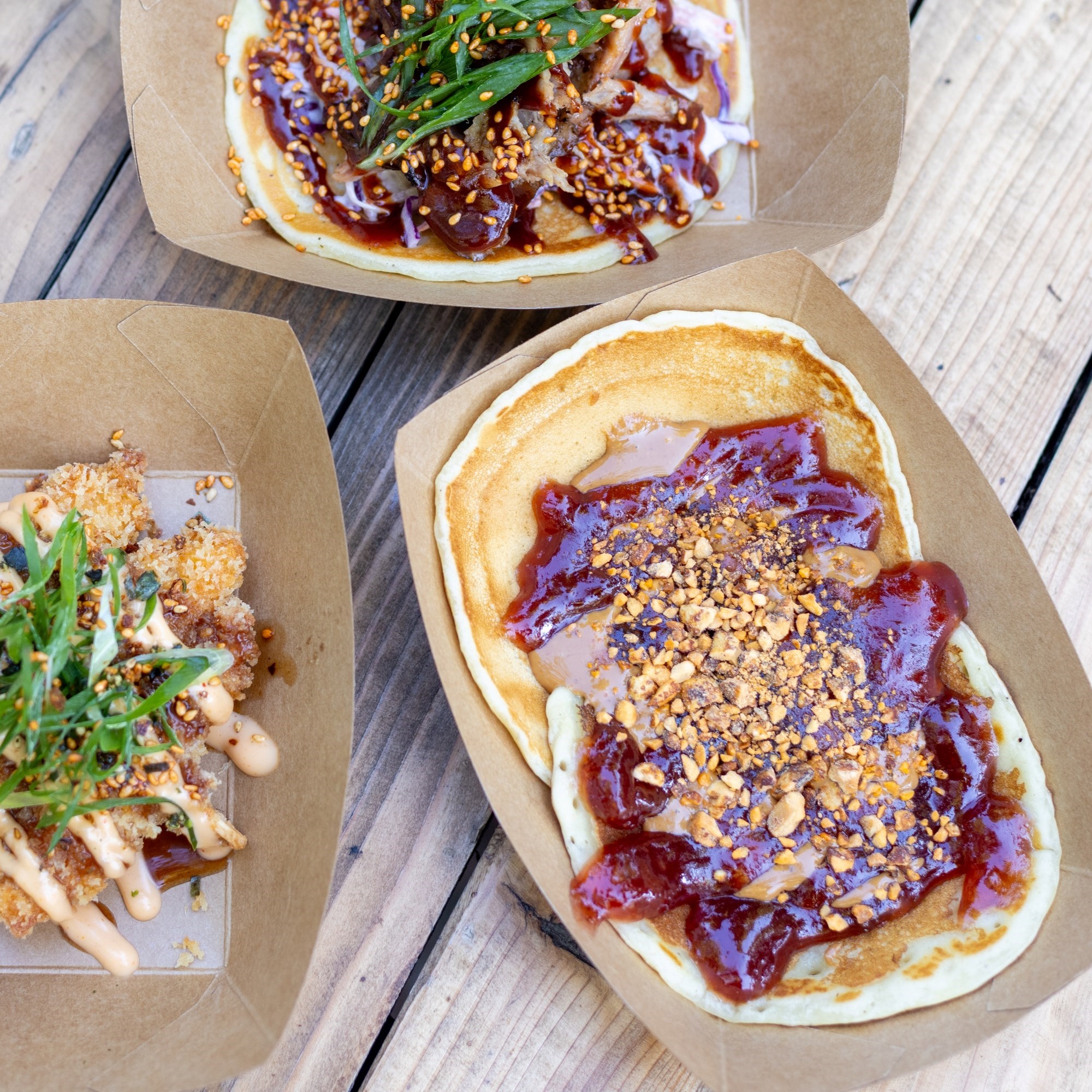 Kansas City je također američka palačinka s pork spare ribs kao nadjevom, coleslaw salatom i BBQ umakom, po cijeni od 4.50 eura. Chinatown kao nadjev ima carsko meso, hoisin umak i kisele krastavce, a cijena joj je 3.20 eura. Zadnja u ponudi je slatka varijanta imena Graceland, američka palačinka s kikiriki maslacem i džemom od jagode, po cijeni od 3 eura.