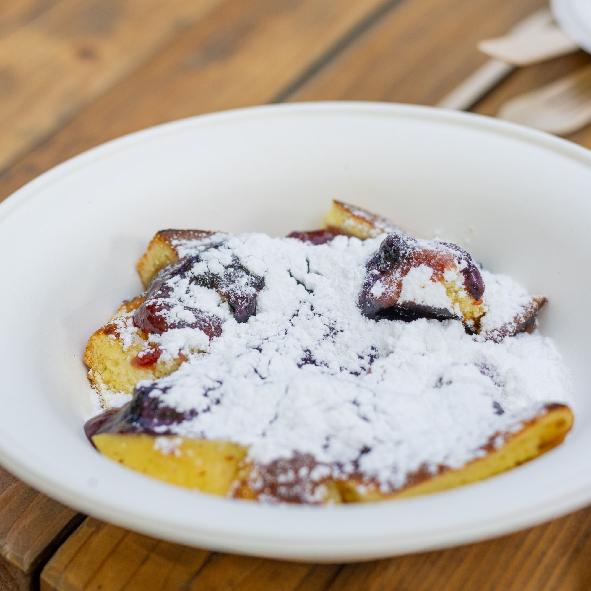 Vegančinka je indijska palačinka dosa od leće i riže, a uz nju se može birati između umaka od mente, rajčice ili kokosa. Cijena joj je 3 eura. Kajzeršmarn je posut šećerom, a može se birati između preljeva od karamele ili nekog od njihovih džemova - divlja borovnica, šipak, marelica, malina, šljiva ili jagoda. Cijena je 3.80 eura.
