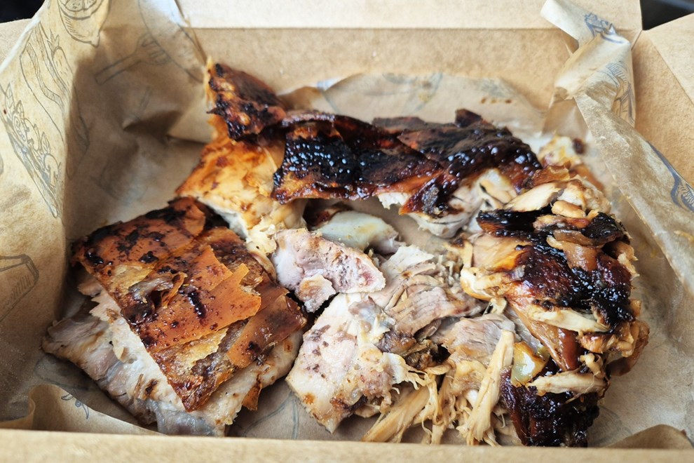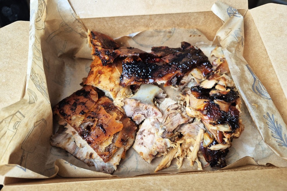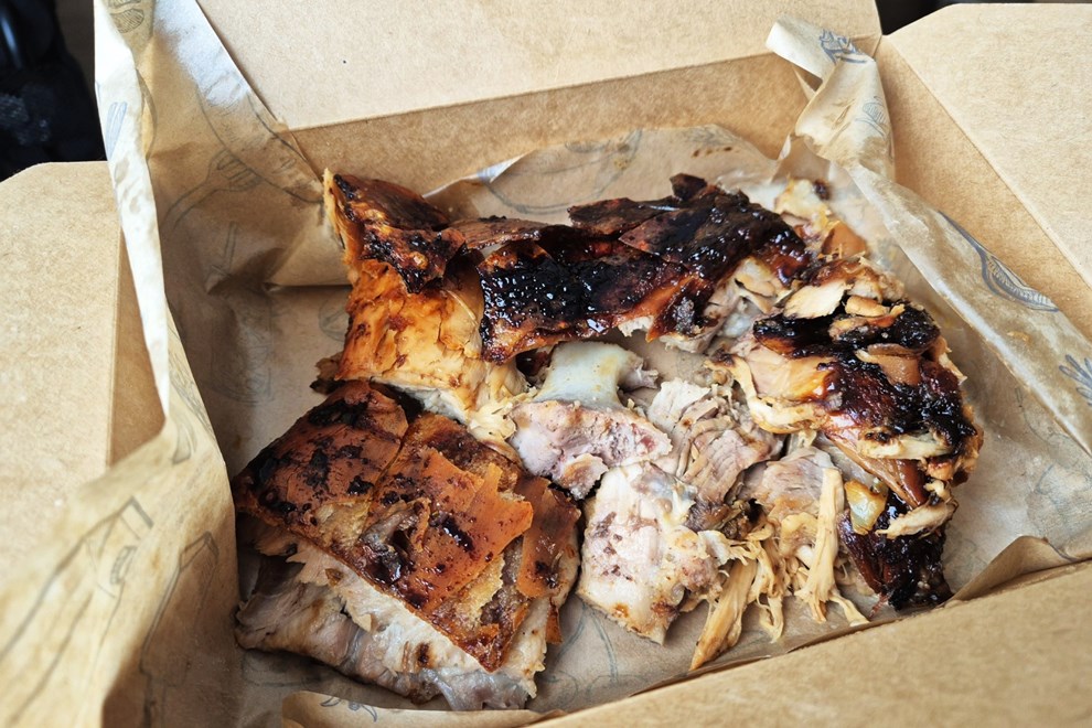 Svojih 300 g odojka i 300 g janjetine, porciju taman za dvije osobe, platila sam 19.90 eura, a s obzirom na to da je cijeli lokal zamišljen kao mjesto na kojemu ćete samo prikupiti svoju narudžbu, bez stolova i stolaca, jedva sam čekala stići kući i probati.