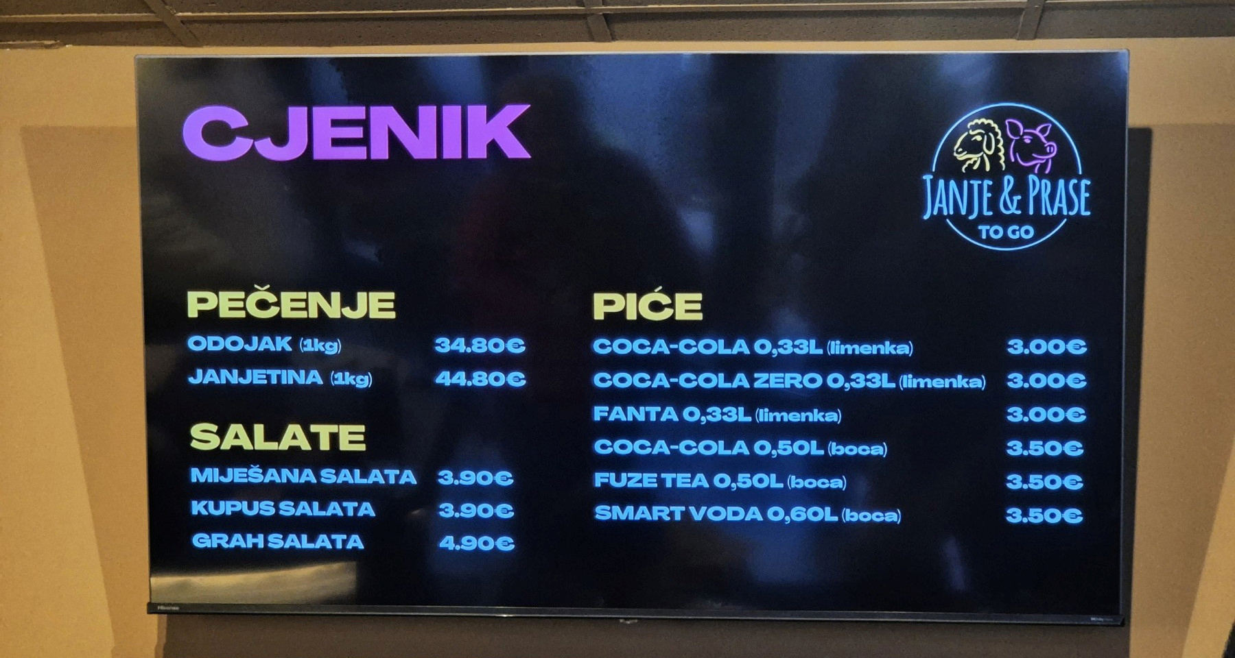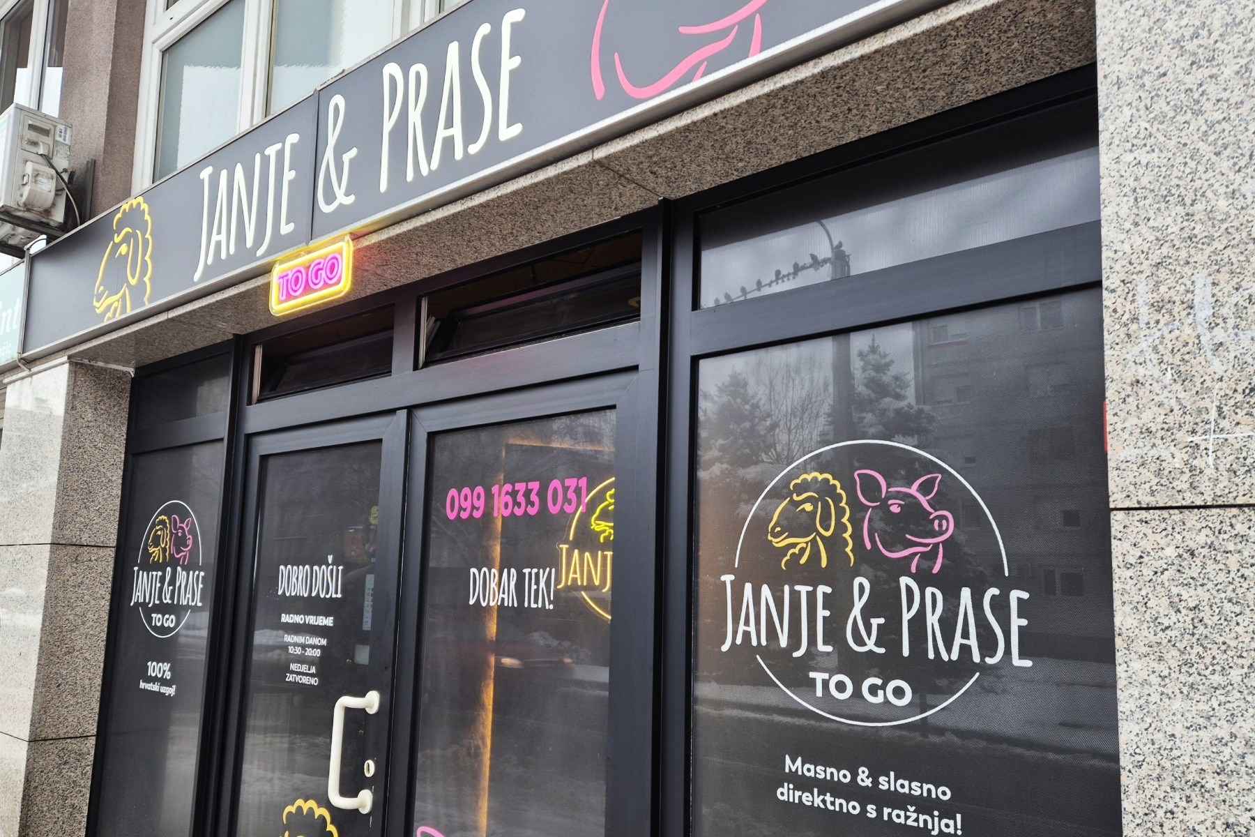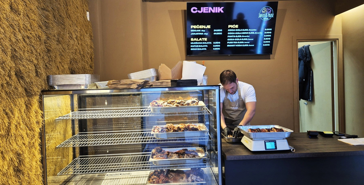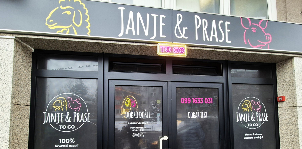 Janje & Prase To Go ime je novog lokala koji je 21. prosinca otvoren u zagrebačkom kvartu Trešnjevka, na adresi Krapinska ulica 27. Čim su otvorili, nastala je prava navala, što je i bilo za očekivati s obzirom na blagdansko razdoblje. Iako se sada približavamo polovici siječnja, interes ne jenjava, a u nekim intervjuima tvrde da se ovdje dnevno proda između 500 i 600 kilograma mesa.