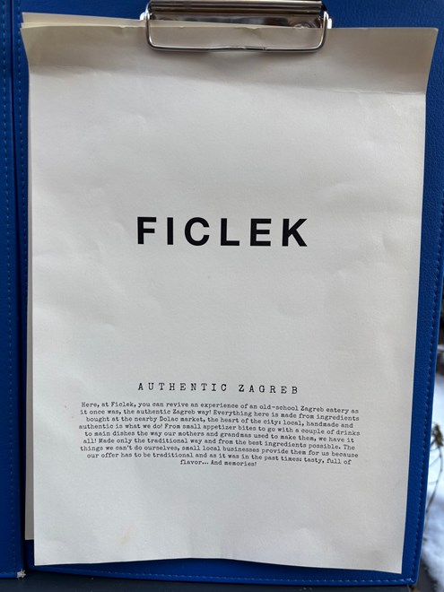 Ficlek je zagrebačka gostionica koja je vrata otvorila u ožujku 2020. godine, u vrlo nezahvalnom trenutku - neposredno prije lockdowna i zagrebačkog potresa. Unatoč svemu, vrlo brzo je pronašla svoju publiku i jasno se profilirala kao jedno od važnijih mjesta za gablec u centru grada. Od početka je zamišljen kao gostionica koja se oslanja na starozagrebačku kuhinju, ali joj pristupa suvremeno, bez pretjerane nostalgije i naglašavanja "starine".
