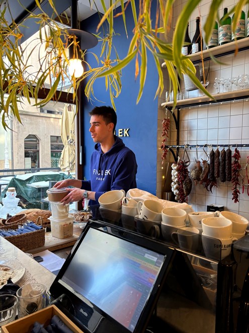 Napravila sam rezervaciju za dvoje za nedjelju, no na kraju sam uspjela dobiti mjesto na šanku - što se ispostavilo kao odlično iskustvo. Pomalo "američki diner" osjećaj objedovanja za šankom u laganoj atmosferi. Došla sam u podne i lokal je već bio krcat. Žamor ljudi, kuhinja koja radi punom parom, gosti koji s ulice pokušavaju ući, red ispred lokala - sve to daje osjećaj živog, gradskog mjesta. I pravi je kontrast mirnoj, gotovo uspavanoj ulici u kojoj se nalazi.