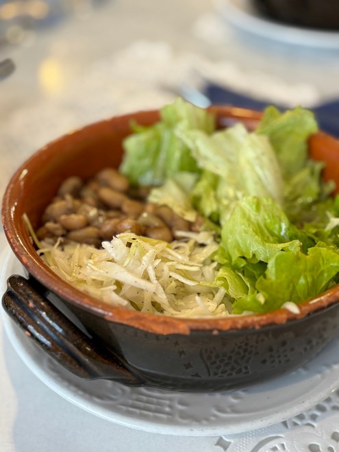 Zatim su stigle salate koje su bile nalik onima koje poslužuju obiteljska gospodarstva i izletišta izvan Zagreba, koja često posjećujem. I baš mi se to svidjelo. Kombinacija hrskave zelene salate, kupusa, cikle i graha je bila prva salata u dugo vremena koju sam pojela baš s užitkom. Također, cikla je bila meka i slatkasta, a budući da je u zadnje vrijeme često jedem i pripremam kod kuće onu domaću, odmah sam prepoznala kvalitetu.