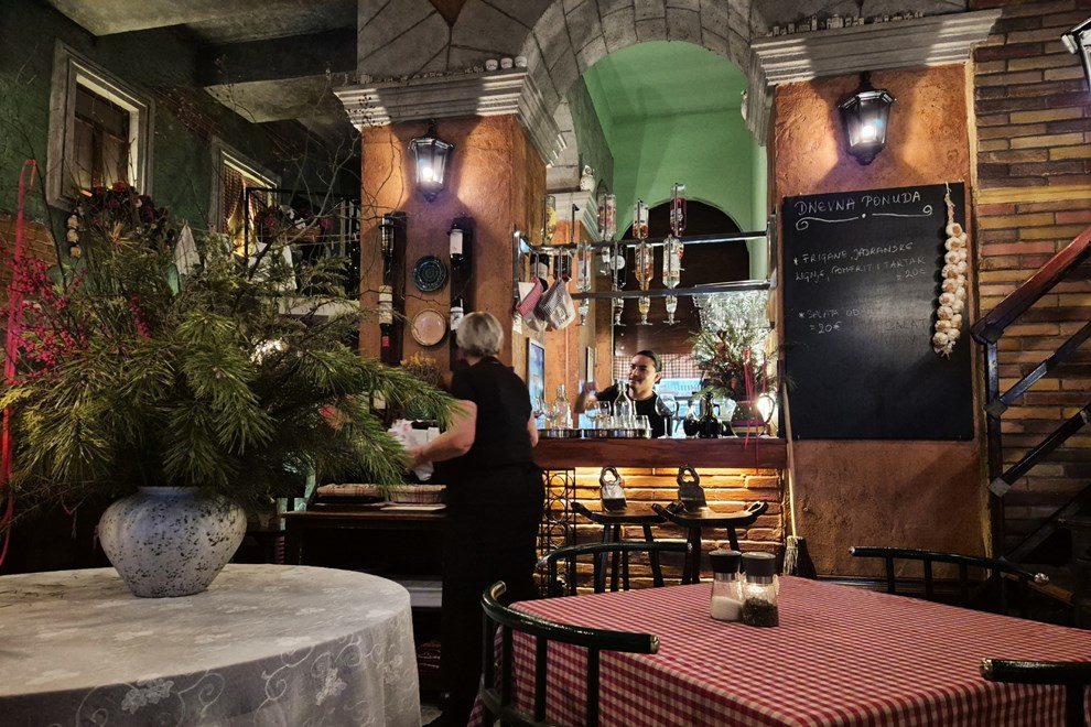 Restoran ima desetak stolova u prizemlju, ali i nekoliko smještenih na galeriji s koje se pruža pogled na cijeli prostor, što dodatno doprinosi osjećaju intime i živosti istovremeno. Canzona nije tiha i sterilna - ona je živa, topla i glasna na onaj ugodan, talijanski način, gdje se smijeh, razgovor i zvuk pribora za jelo koji zvecka po stolovima stapaju u savršenu kulisu za večeru.