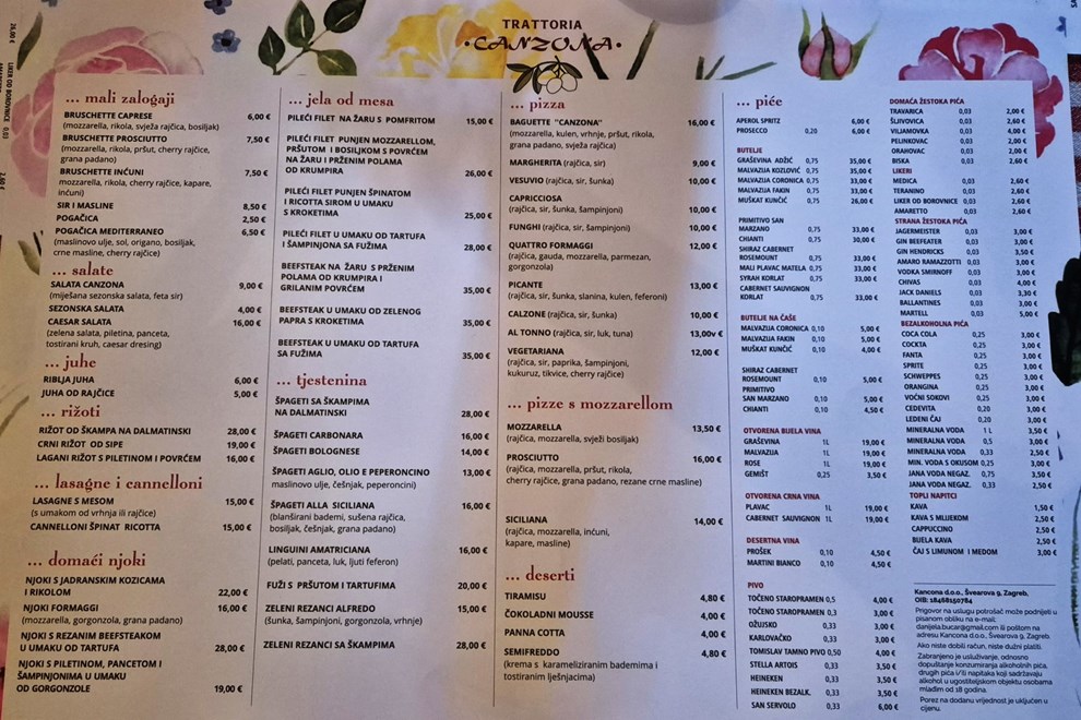 U Canzonu smo stigli u subotu u poslijepodnevnim satima, i to bez rezervacije, iako nismo bili sigurni da ćemo uopće uspjeti uloviti mjesto. Kada smo ušli unutra oko 15.30, svi stolovi bili su popunjeni, a simpatična konobarica predložila nam je da malo pričekamo da se oslobodi stol.