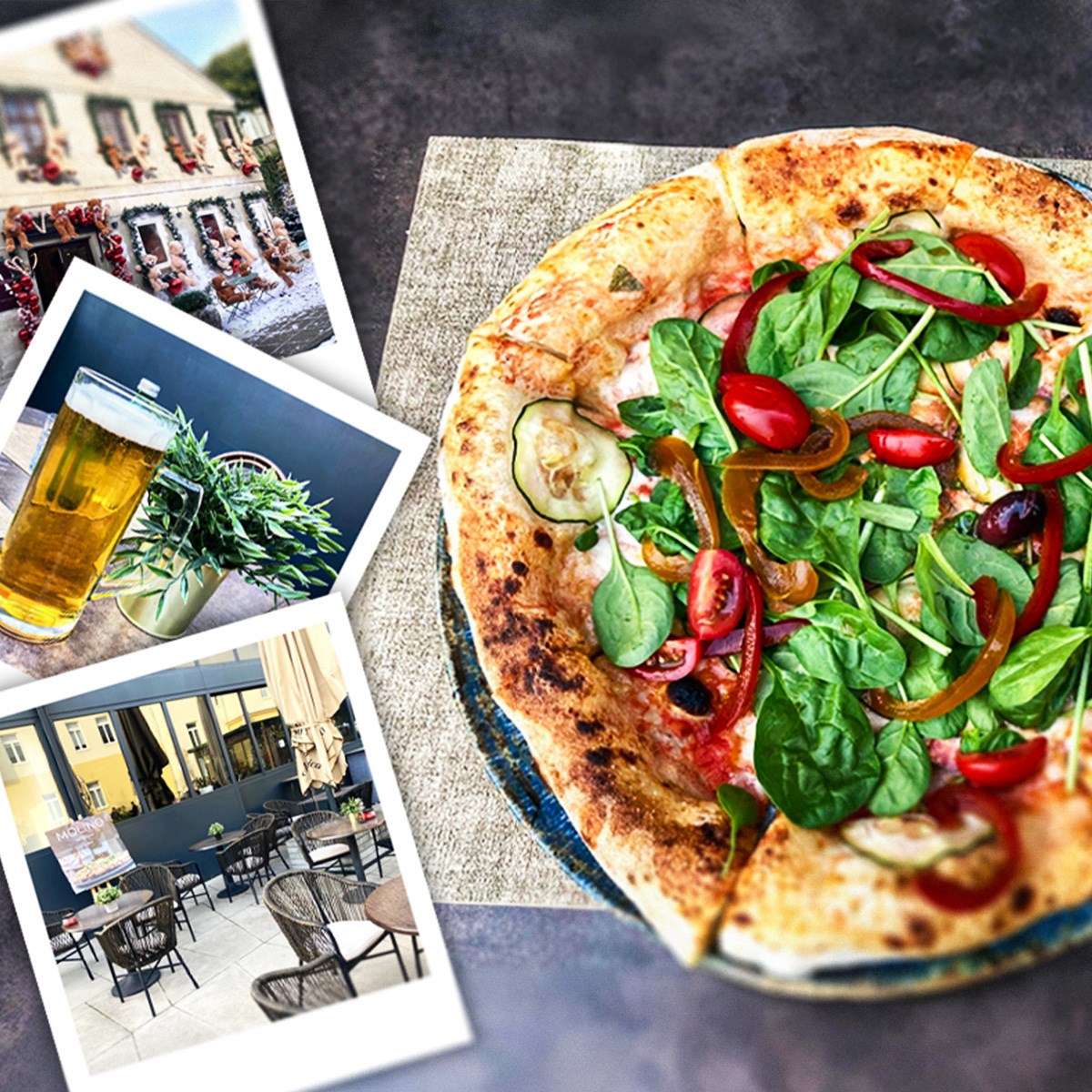 Izuzetno toplo, sunčano i pomalo neprirodno vrijeme za ovo doba godine iskoristili smo i zauzeli stol na velikoj vanjskoj terasi. I unutarnji je prostor poprilično prostran, skladno uređen i oku ugodan. Molino u ponudi ima dvadesetak pizza podijeljenih u dvije uobičajene kategorije, klasične i gourmet. Budući da nas je bilo četvero uspio sam probati četiri različite pizze, tri klasične i jednu gourmet.