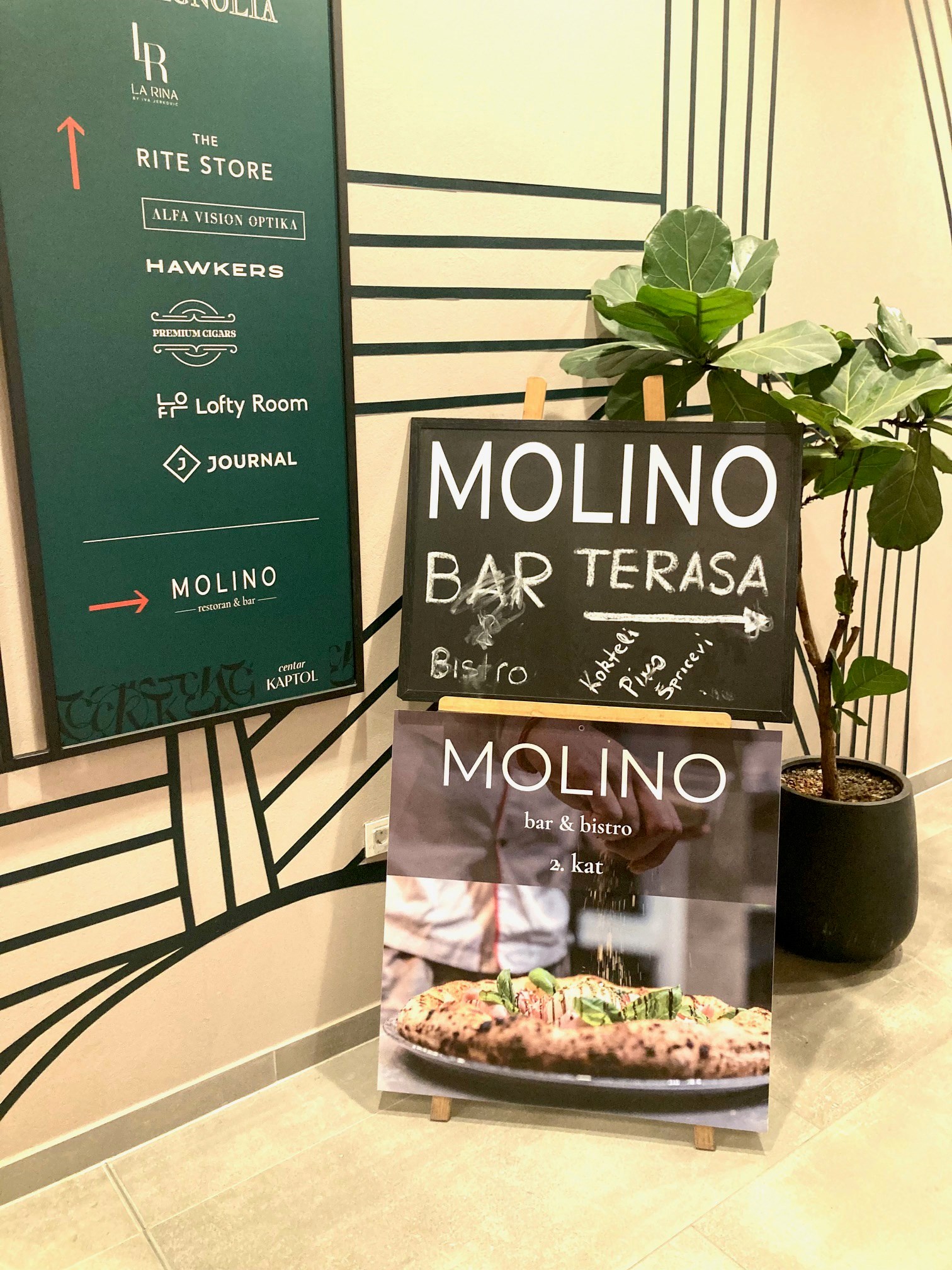 Budući da se spomenuti Atelier Sreće sa svojim simpatičnim medvjedićima nalazi vrlo blizu Centra Kaptol izbor je pao na pizzeriju Molino koja se nalazi na drugom katu tog trgovačkog centra. Molino je u biti restoran i bar koji u svojoj ponudi ima i napoletanske pizze.