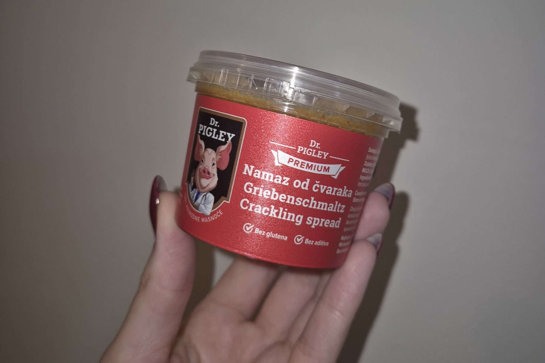 Čvarci s ljutom paprikom bili su malo preljuti za moj ukus, pa sam se odlučila za delikates stisnute čvarke, a 100 grama platila sam 4 eura. Osim čvaraka, kušala sam i njihove odlične namaze od čvaraka - klasičan namaz od čvaraka okusom me odmah vratio u djetinjstvo, kada smo jeli svinjsku mast namazanu na kruh, a čvarci se u tom namazu nisu previše osjetili.