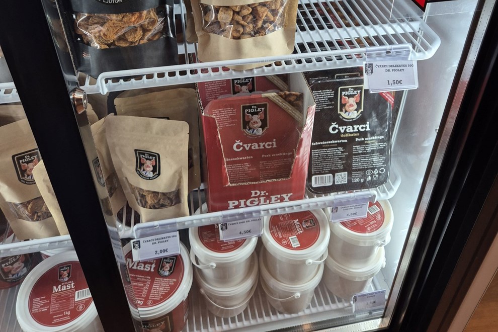 100 g delikates čvaraka s ljutom paprikom platit ćete 4.50 eura, a tu su i masti i namazi - kilogram svinjske masti košta 2.20 eura, 100 g namaza od čvaraka košta 2 eura, a ista količina namaza s dodatkom paprike košta 3 eura.