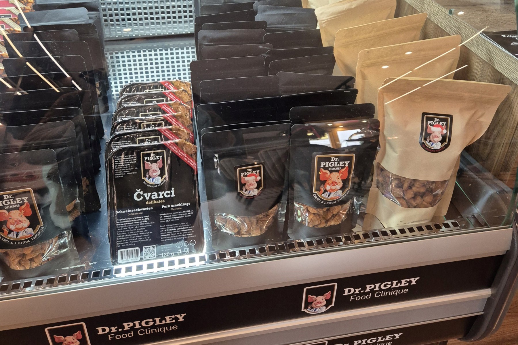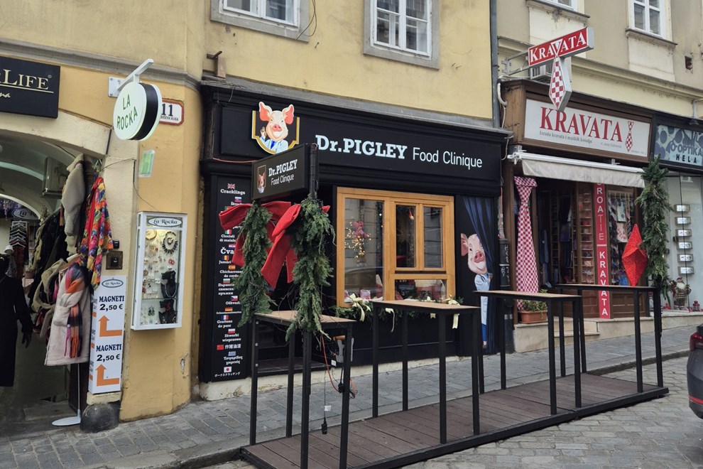 Radićeva je jedna od najprometnijih ulica u centru - stalna rijeka turista spušta se prema trgu ili penje prema Gornjem gradu, a usput traže nešto autentično što mogu probati ili ponijeti kući. U tom smislu, Dr. Pigley Food Clinique mogao bi bez problema postati pravi mali hit među posjetiteljima grada - čvarci su egzotični koliko i domaći, a dovoljno neuobičajeni da zaintrigiraju turiste.