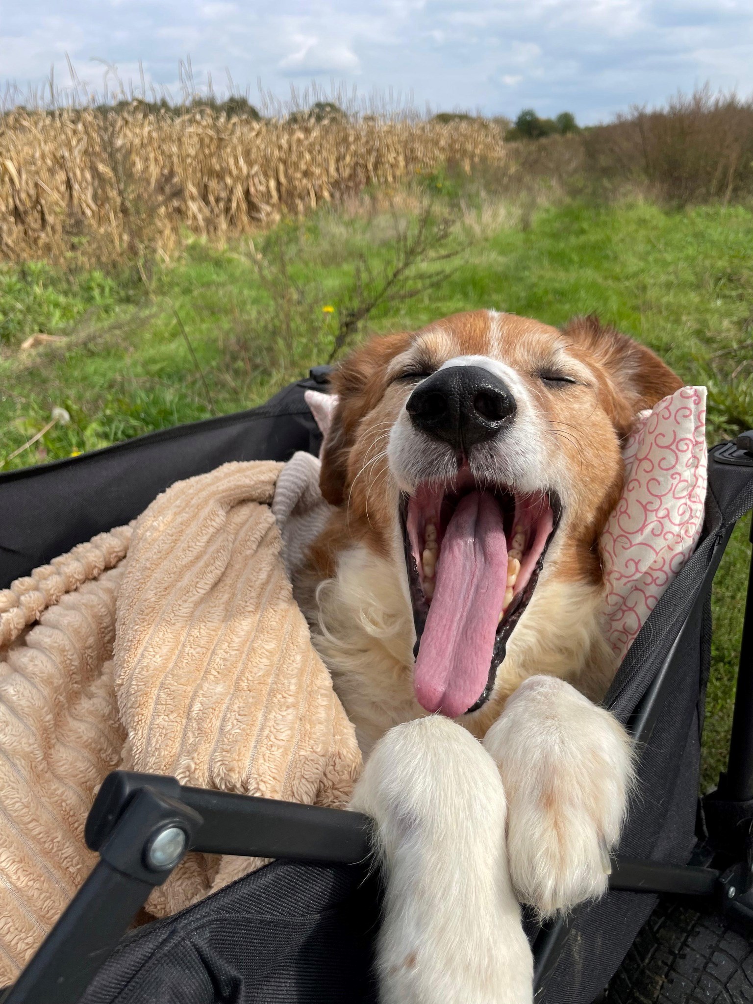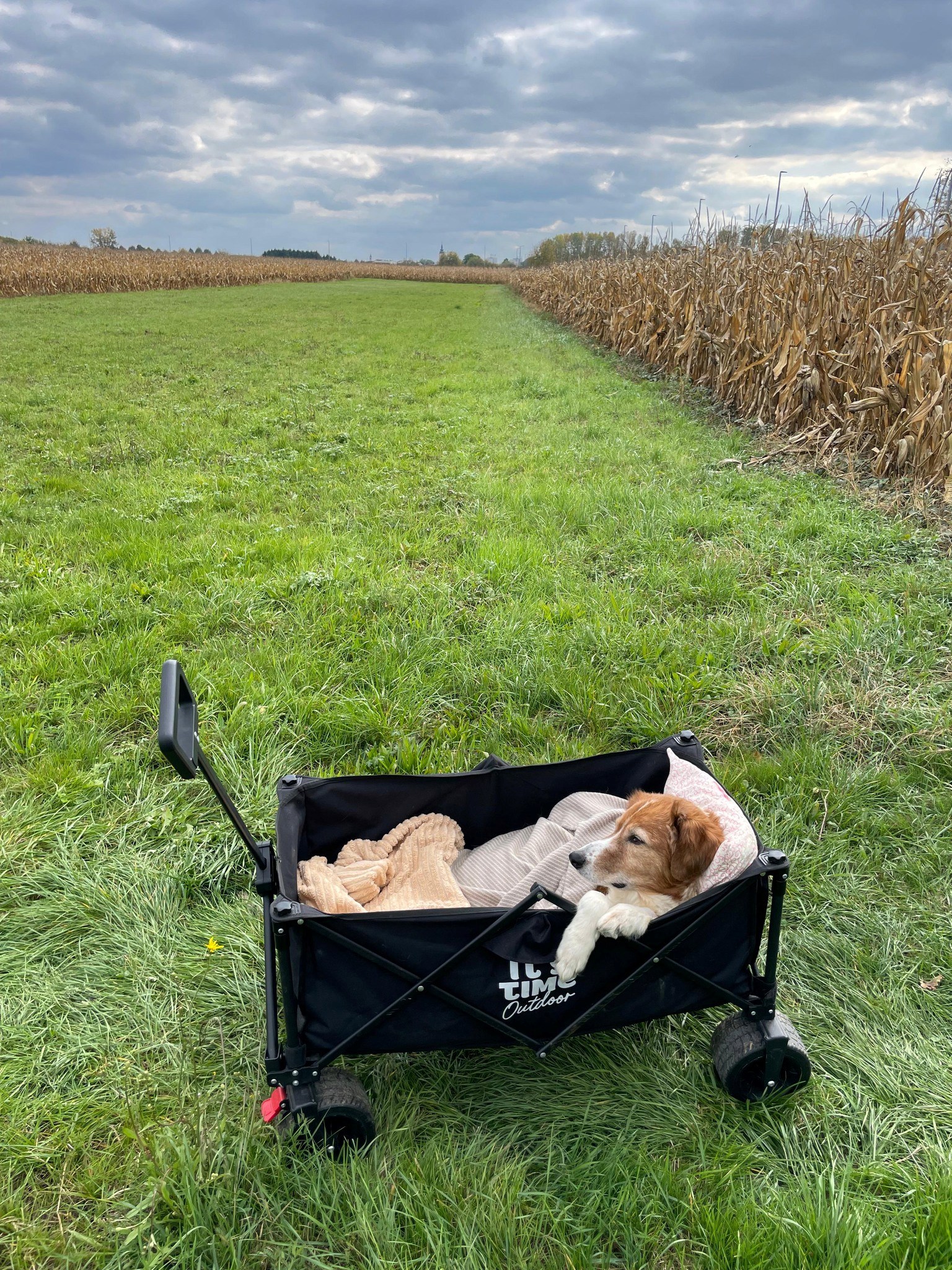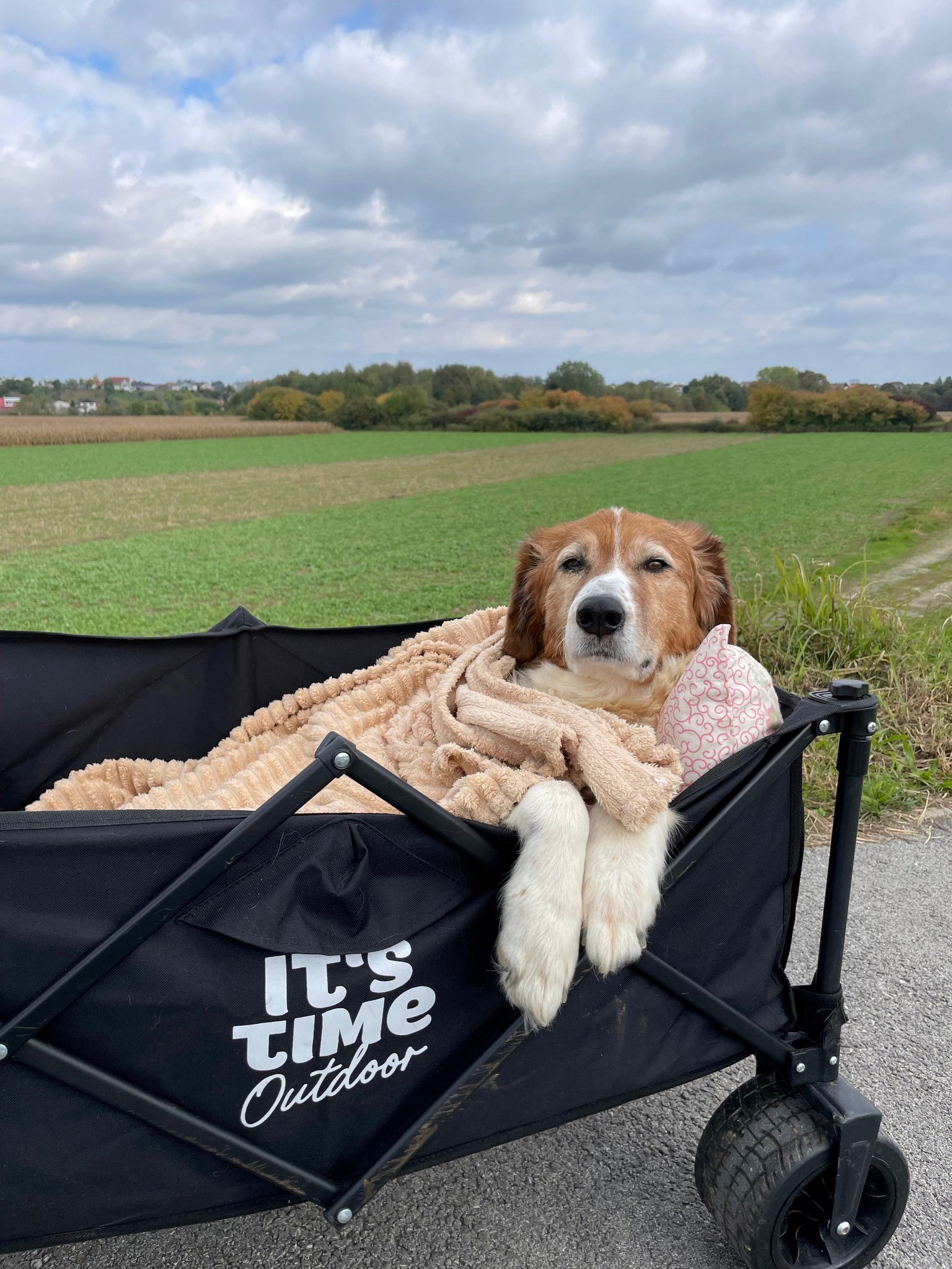 Zahvaljujući ljudima velikog srca, Tom je dobio posebna kolica u kojima ga njegova čuvalica svakodnevno vodi u šetnju. Iako više ne može trčati i igrati se kao prije, Tom sada može uživati u svijetu oko sebe, iz udobnosti svojih kolica.