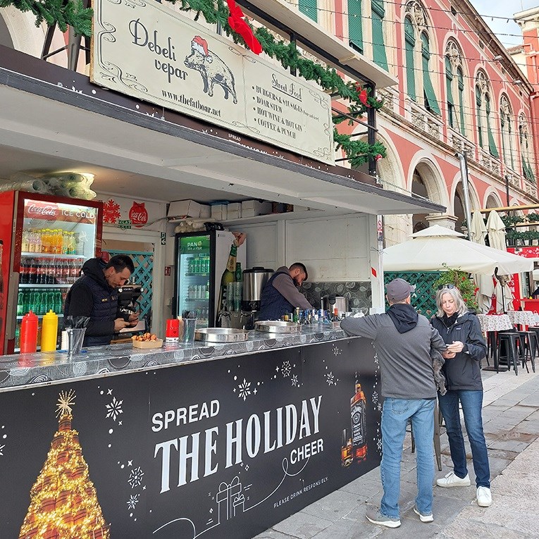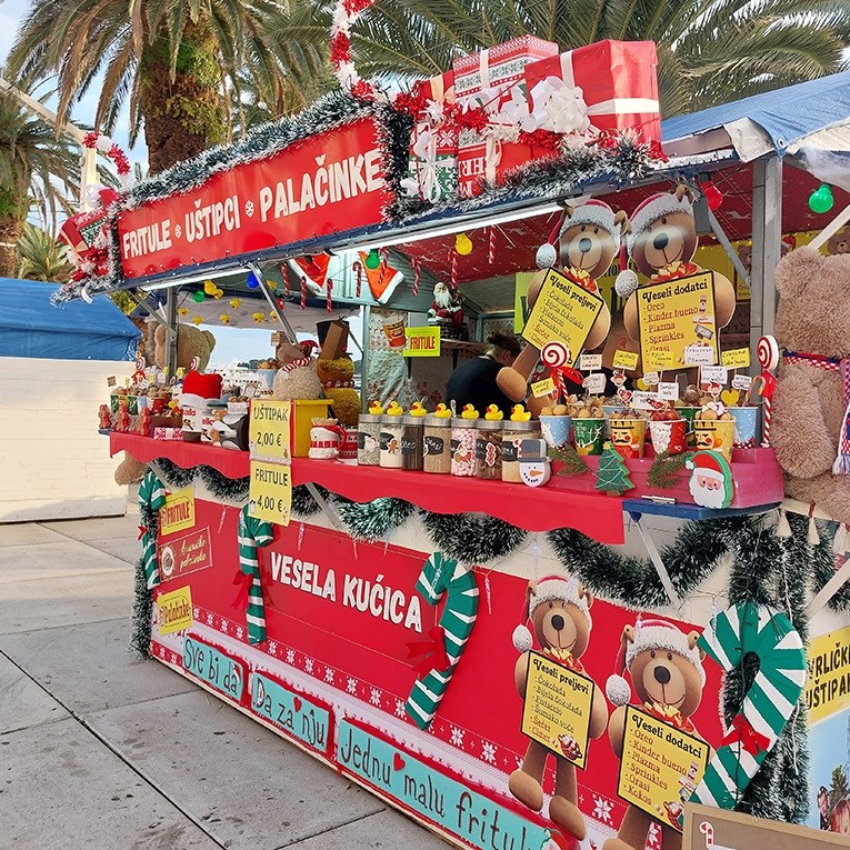 ADVENT u Splitu ove godine odvija se na šest lokacija. U centru grada provjerili smo ovogodišnju gastronomsku ponudu te koje nove specijalitete možete pronaći na Adventu. Nekoliko kućica s gastronomskom ponudom smjestilo se na Rivi, a četiri na Prokurativama.