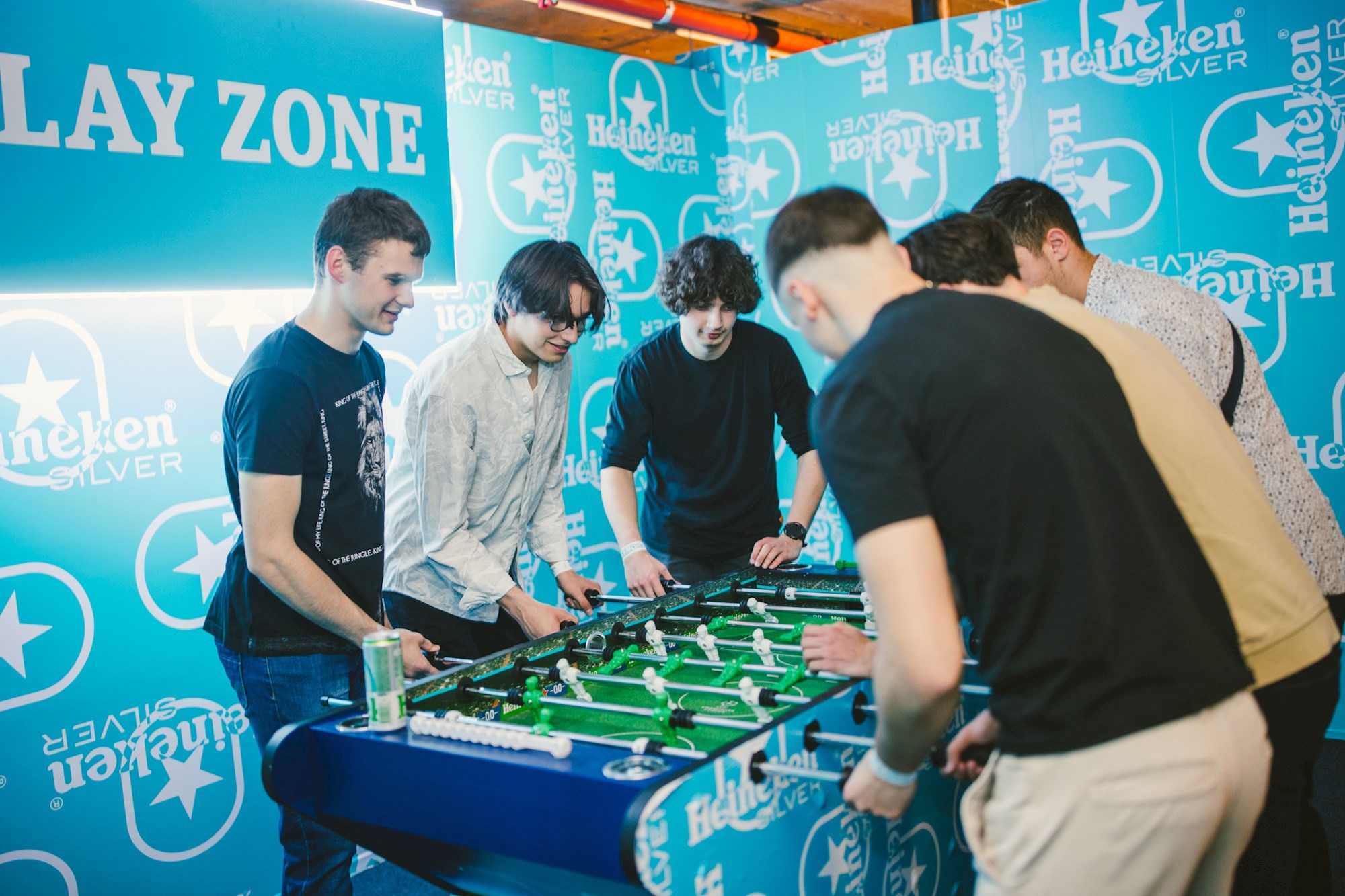 Prije dolaska u glavni prostor Laube osvijetljen spektakularnim 3D projekcijama na zidovima, posjetitelji su prolazili kroz beskrajni osvjetljeni tunel, a lagana glazba, fotografiranje u foto kabini, igranje videoigara i stolni nogomet bili su idealni za zagrijavanje za nezaboravni party koji je uslijedio. Potom su posjetitelji uživali u glazbi koju su odabrali vrhunski DJ-evi, plesali u ritmu najpoznatijih hitova, ispisivali poruke koje su se kasnije prikazivale na ekranima i osvajali nagrade dok ih je istovremeno osvježavala zvijezda večeri - Heineken® Silver - pivo koje mijenja pravila na pivskoj sceni odgovarajući na potrebe novih generacija koje žele vrhunsko pivo, ali laganog okusa i s nešto manje gorčine.