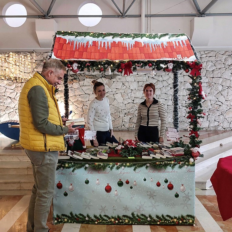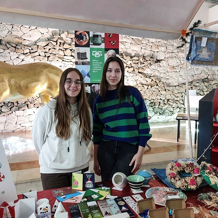 "Imamo personalizirane božićne čestitke, magnete, božićne ukrase, a možda i najzanimljiviji je ovaj namještaj pored nas. To su maturalni radovi koji se prodaju, a najčešće ih kupuju profesori, roditelji ili poznanici koji s namjerom dođu u školu. I skoro su svi rasprodani", ispričala je učenica Andrea Ivić.