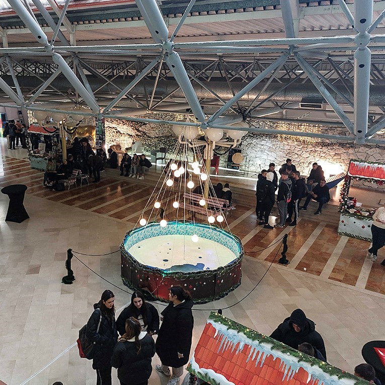 ADVENT u Graditeljsko-geodetskoj tehničkoj školi tradicija je koja se održava godinama. No ovog puta učenici i profesori su, uz adventske kućice, prostor upotpunili maštovitom božićnom jelkom koja spaja elemente vode i svjetla.