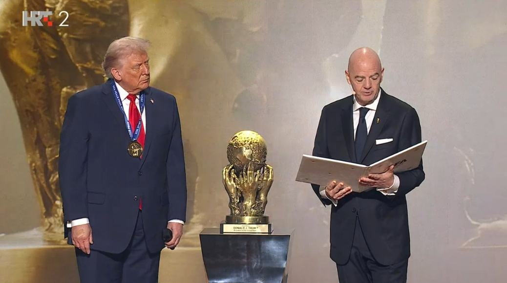 Donald Trump, nakon što mu je izmakla dugo željena Nobelova nagrada za mir, prvi je dobitnik nove FIFA-ine nagrade za mir. Priznanje mu je uručeno na svečanom ždrijebu.