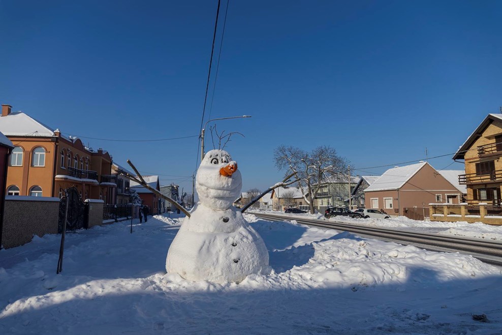 U CENTRU Bijelog Brda ovih je dana osvanuo prizor koji je mnogima izmamio osmijeh - snjegović Olaf visok čak tri metra. Ovu simpatičnu snježnu skulpturu izradio je Vukašin Klajić uz pomoć prijatelja, a za cijeli pothvat trebalo im je oko jedanaest sati.