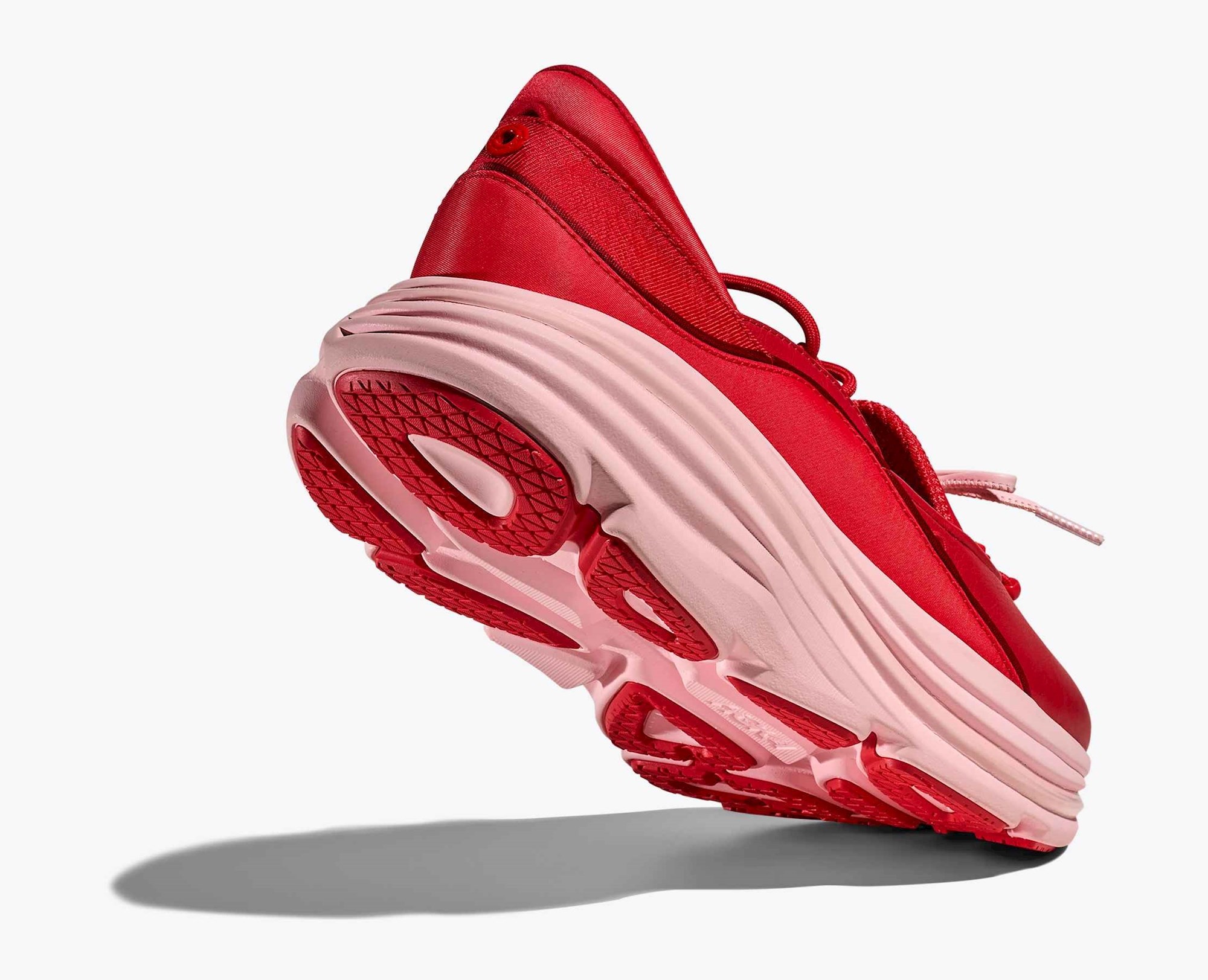 Cipele, dostupne u jarko crvenoj i klasičnoj crnoj boji, dolaze s masivnim potplatom preuzetim s Hokinih Bondi tenisica za cestovno trčanje. Upravo u tom kontrastu leži njihova posebnost - spoj uštogljenog stila tradicionalne cipele s izrazito tehničkim i modernim potplatom.