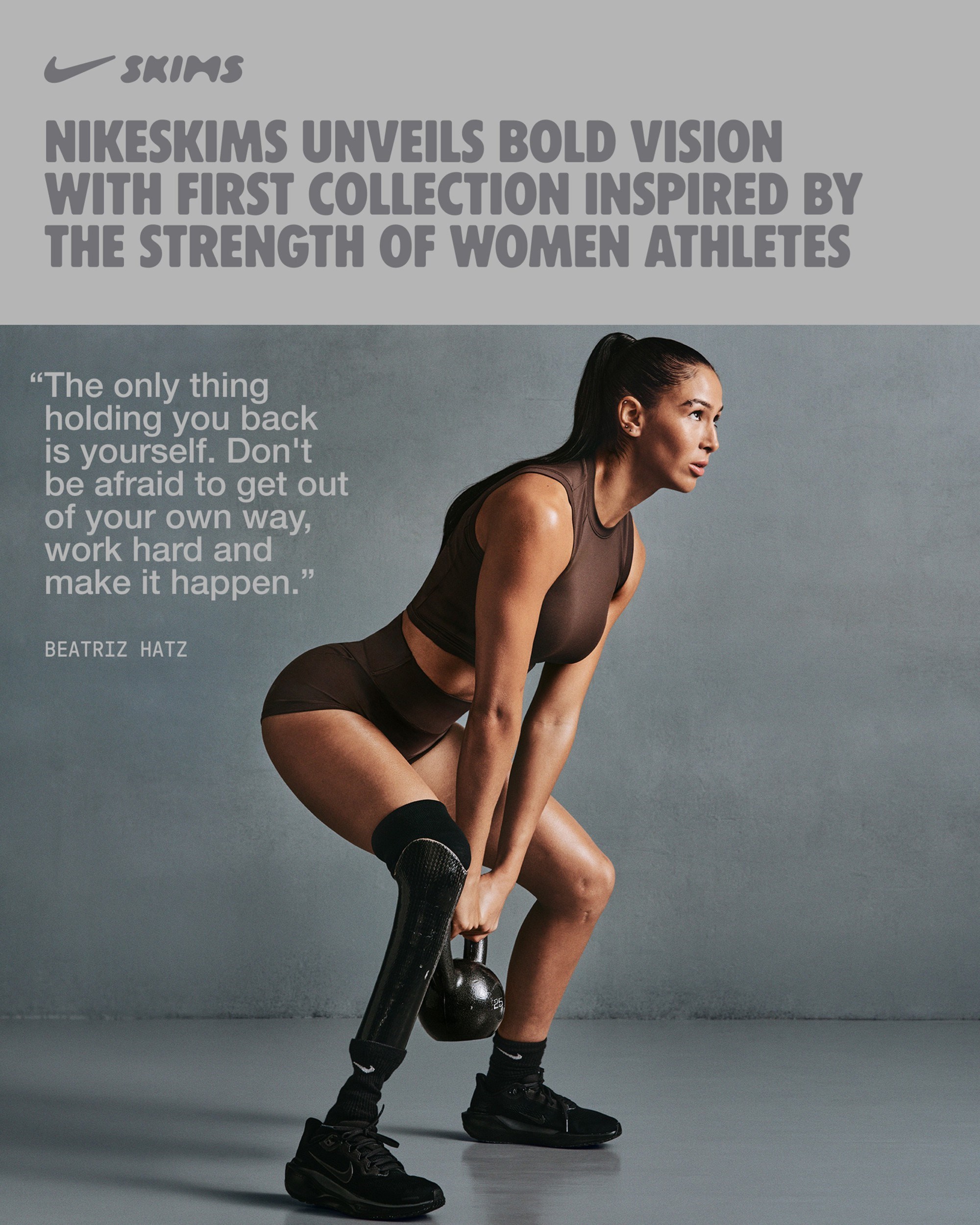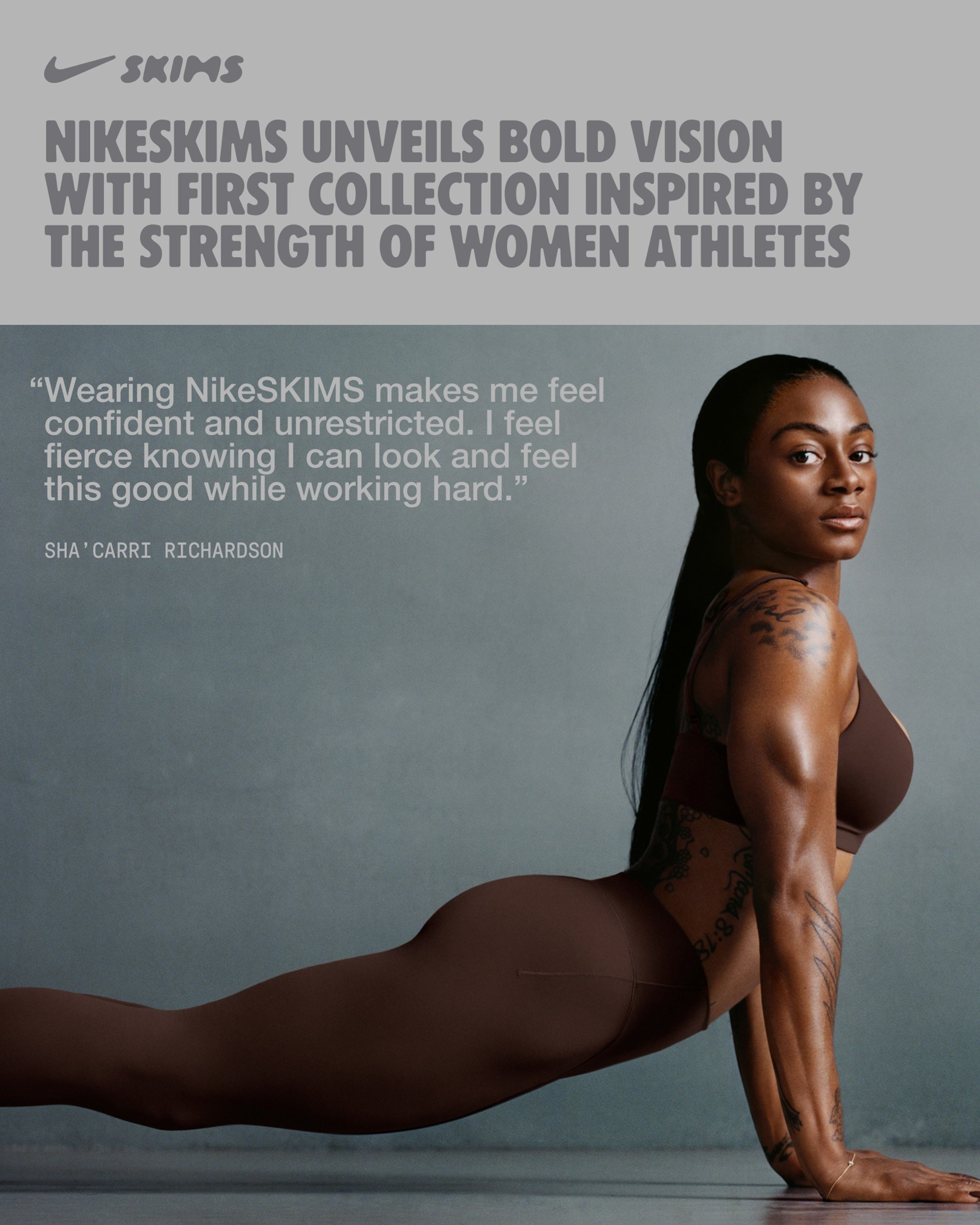 "Prva NikeSKIMS kolekcija donosi ono što nijedan drugi brend ne može: novu estetiku i sustav odijevanja, opsesivno oblikovan za tijelo - od studija do teretane i dalje", navode iz Nikea.
