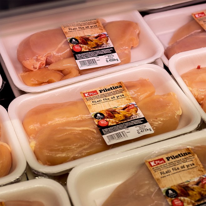 Ručak u mnogim kućanstvima često znači i meso na tanjuru, a u Konzumu se trenutačno posebno ističe ponuda K Plus piletine. Izdvajaju se: pileći batak (1 kg, akcijska cijena 3.29 €), pileća prsa bez kože s kosti (1 kg, akcijska cijena 4.79 €), pileća krila (1 kg, akcijska cijena 2.99 €) te pileća jetra sa srcem (1 kg, 3.59 €).