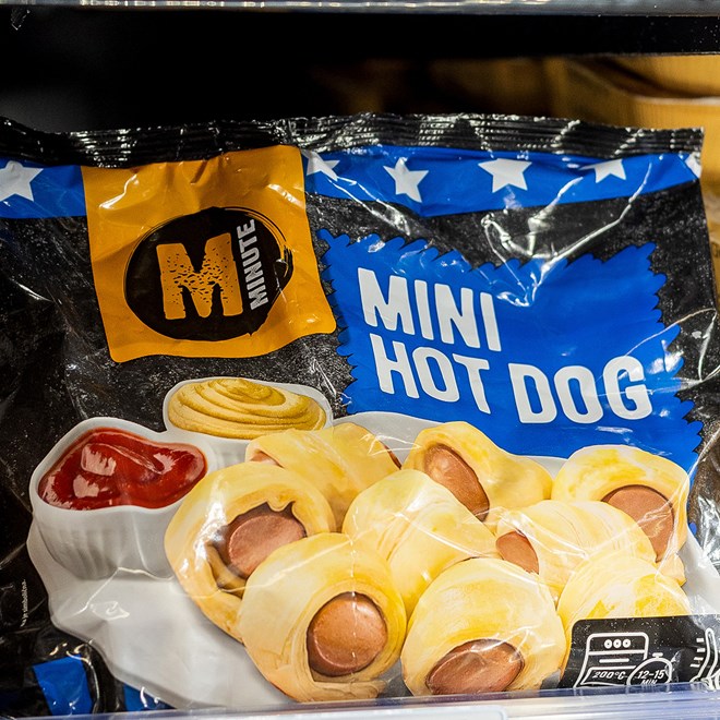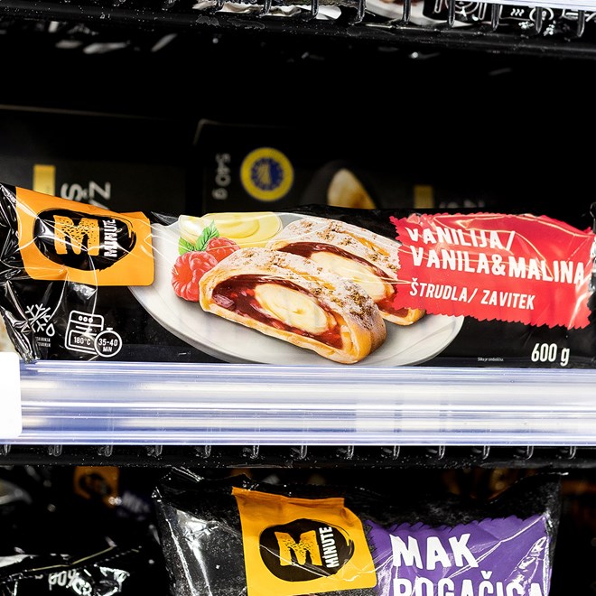 Iz Minute ponude izdvajaju se salate (odabrane vrste, 170-180 g, akcijska cijena 2.49 €), pizze (odabrane vrste, 330-350 g, 1.79 €), panirani kolutići lignje (400 g, akcijska cijena 1.99 €), mini hot dog (700 g, akcijska cijena 2.49 €), pite uz 20% popusta te knedle Duo krema (600 g, akcijska cijena 1.99 €).