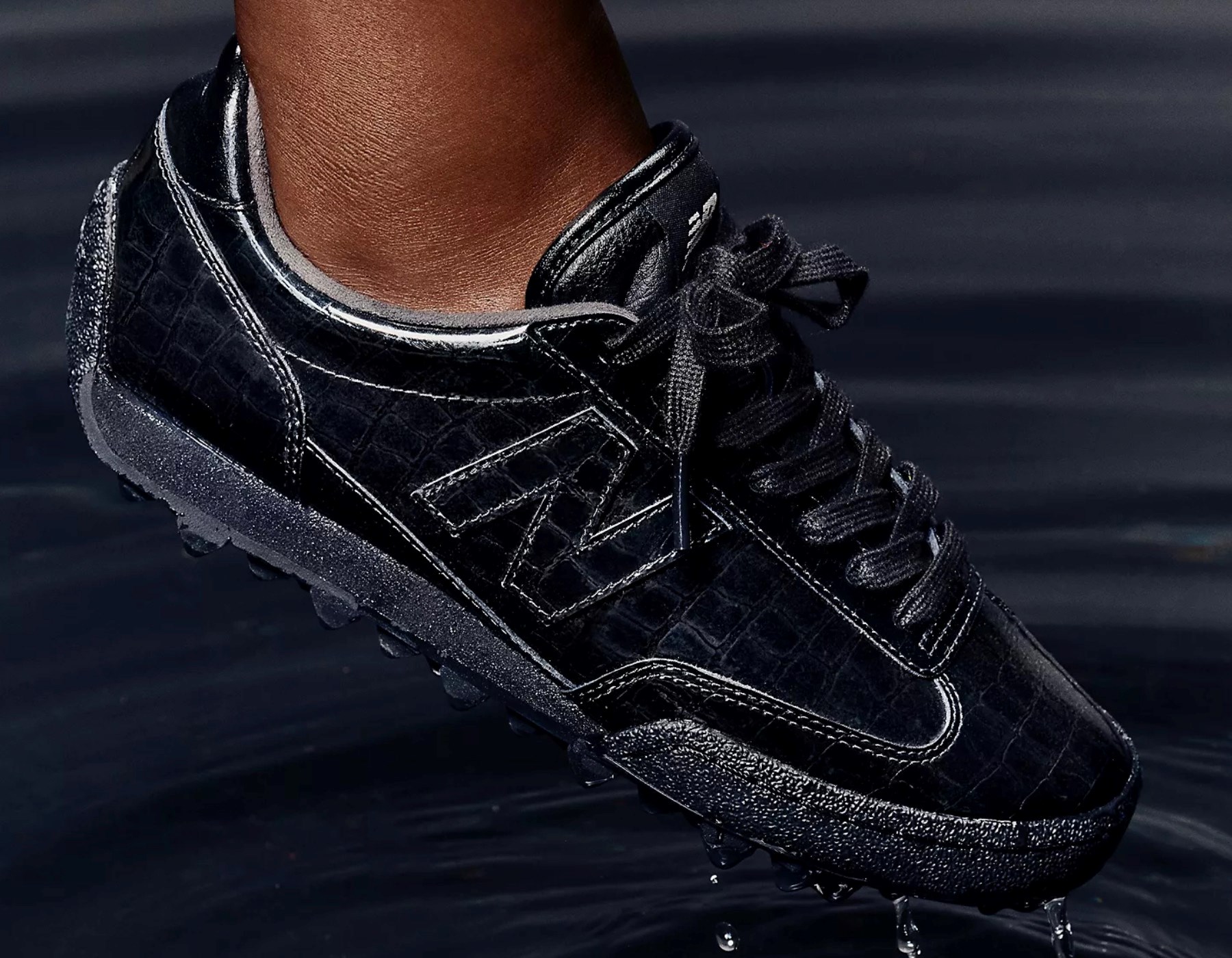 Ipak, za razliku od njega, ovdje sjajna imitacija životinjske kože krasi klasičnu siluetu tenisice za trčanje koja podsjeća na jednostavni model New Balance 471.