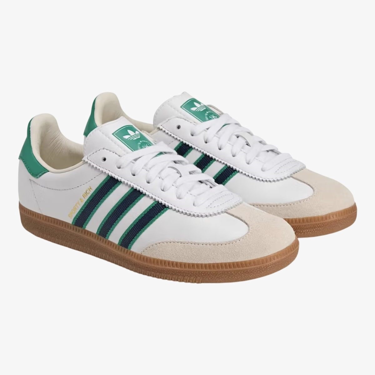 Nova verzija omiljene Sambe dolazi u svježoj bijeloj boji, naglašenoj elegantnim zelenim i tamnoplavim tonovima. Dizajn besprijekorno spaja profinjeni minimalizam, po kojem je Sporty & Rich poznat, s adidasovom bogatom sportskom baštinom.