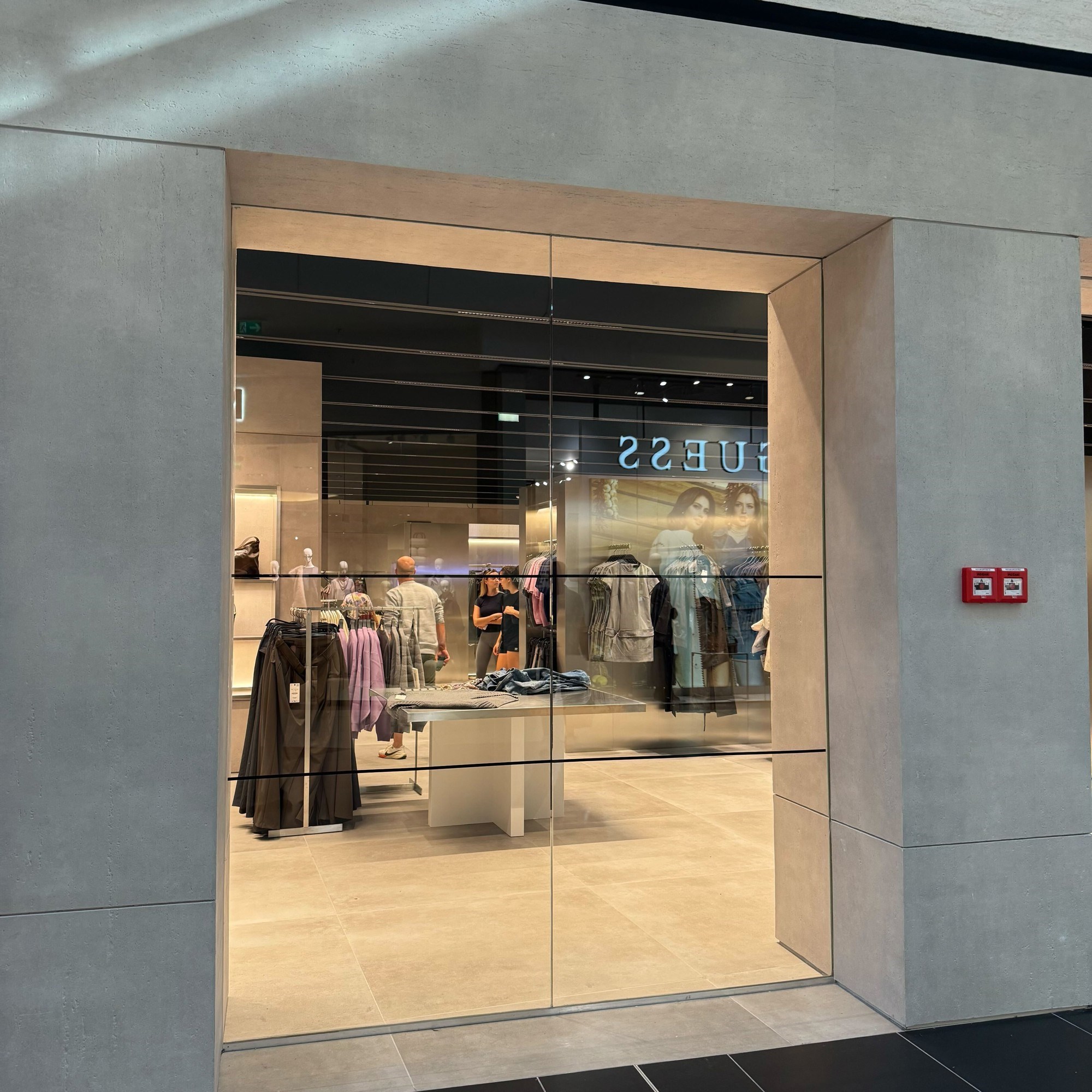 Cijeli je prostor uređen u stilu ekskluzivnog, luksuznog butika. Prostor je elegantno i minimalistički uređen, a trgovina je podijeljena u više odvojenih sekcija, od kojih je svaka posvećena određenom asortimanu zbog čega nam je sama trgovina djelovala manjom.