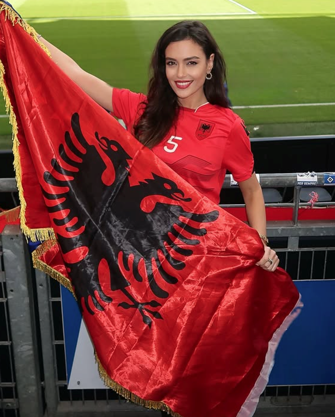 FOTO Albanska hit voditeljica slavi pobjedu nad Srbijom. Pokazala je dvoglavog orla