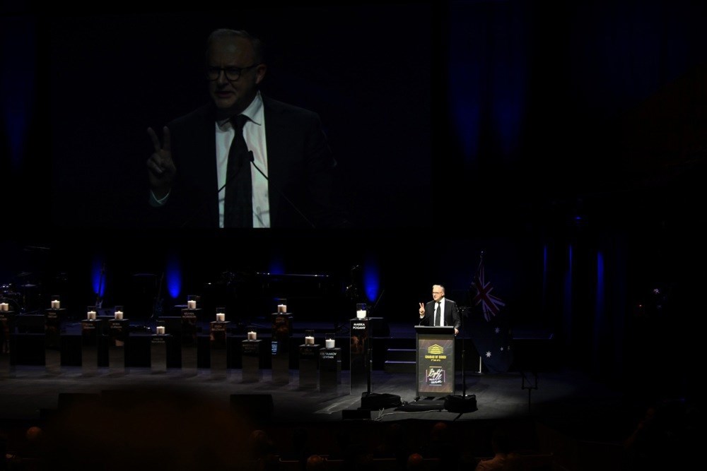 "Došli ste slaviti festival svjetla i slobode, a otišli kao žrtve nasilja iz mržnje. Duboko mi je žao što nismo mogli zaštititi vaše voljene od ovog zla", rekao je Albanese, čiji je govor na događaju popraćen dugim pljeskom. Prema policiji, otac i sin otvorili su vatru na slavlju židovskog blagdana Hanuke 14. prosinca, a u toj je masovnoj pucnjavi, najgoroj u Australiji u nekoliko desetljeća, ubijeno 15 ljudi.