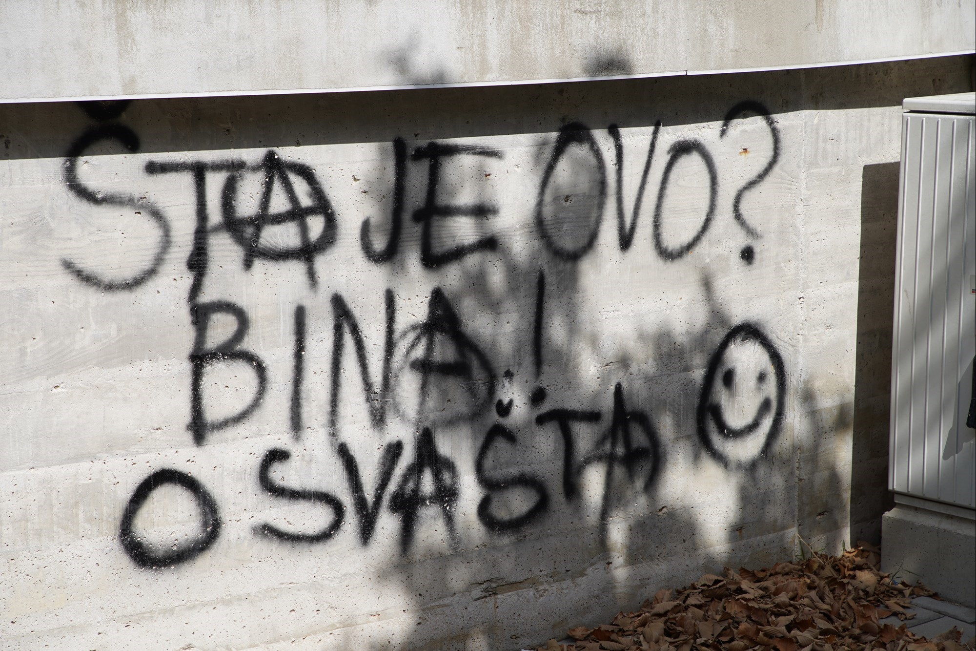 Festival koji o ratu progovara na način koji odudara od onog uobičajenog u Benkovcu neće proći, poručili su, a u znak otpora prema "drugačijem" iza knjižnice ostalo je samo ušato slovo U i križ nacrtani na betonu.