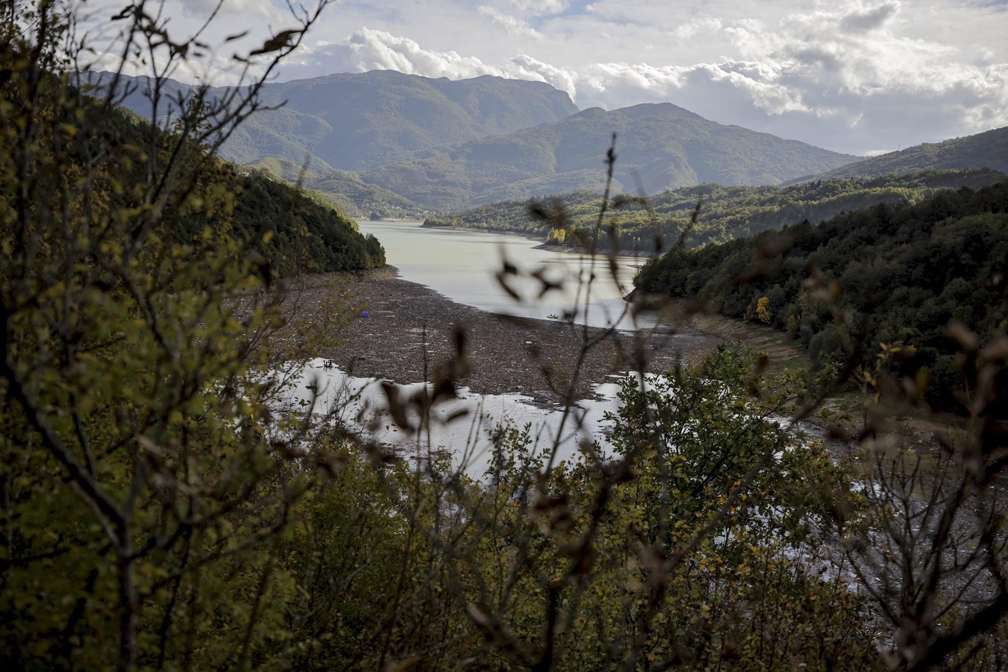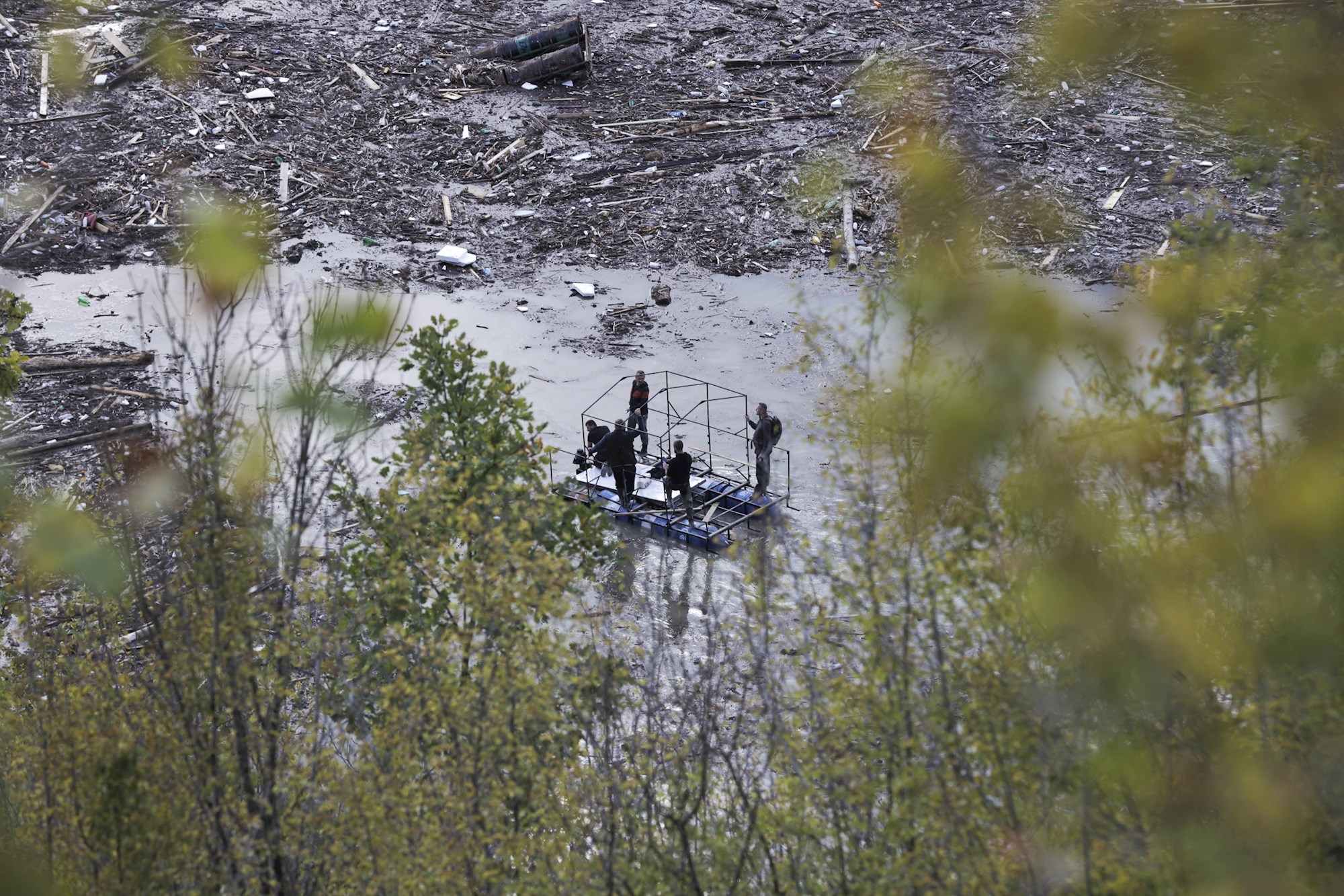 U Jablaničkom jezeru u Buturović Polju mogu se vidjeti velike količine smeća koje pluta na površini vode, kao i čamci koji pretražuju teren.