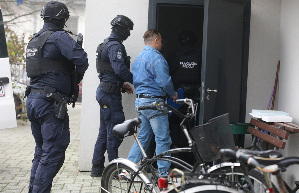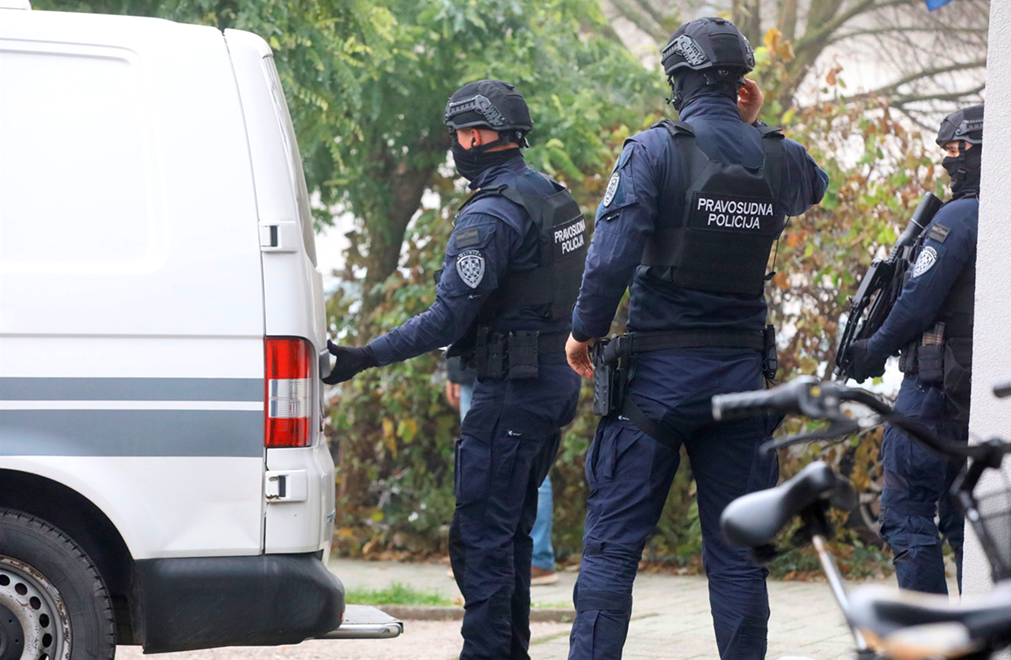 Na parkiralište je prvo stigao civilni policijski kombi iz kojeg su izašli policajci u civilu te obišli prostor oko zgrade. Potom je stigao policijski kombi pod rotirkama, nakon njega pravosudni kombi u kojem je bio Mlađan, a nakon njih još jedan policijski kombi s policajcima s dugim cijevima.