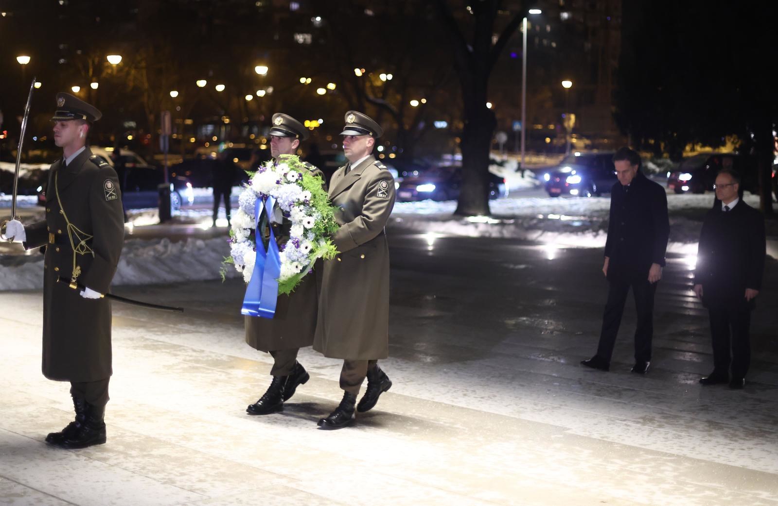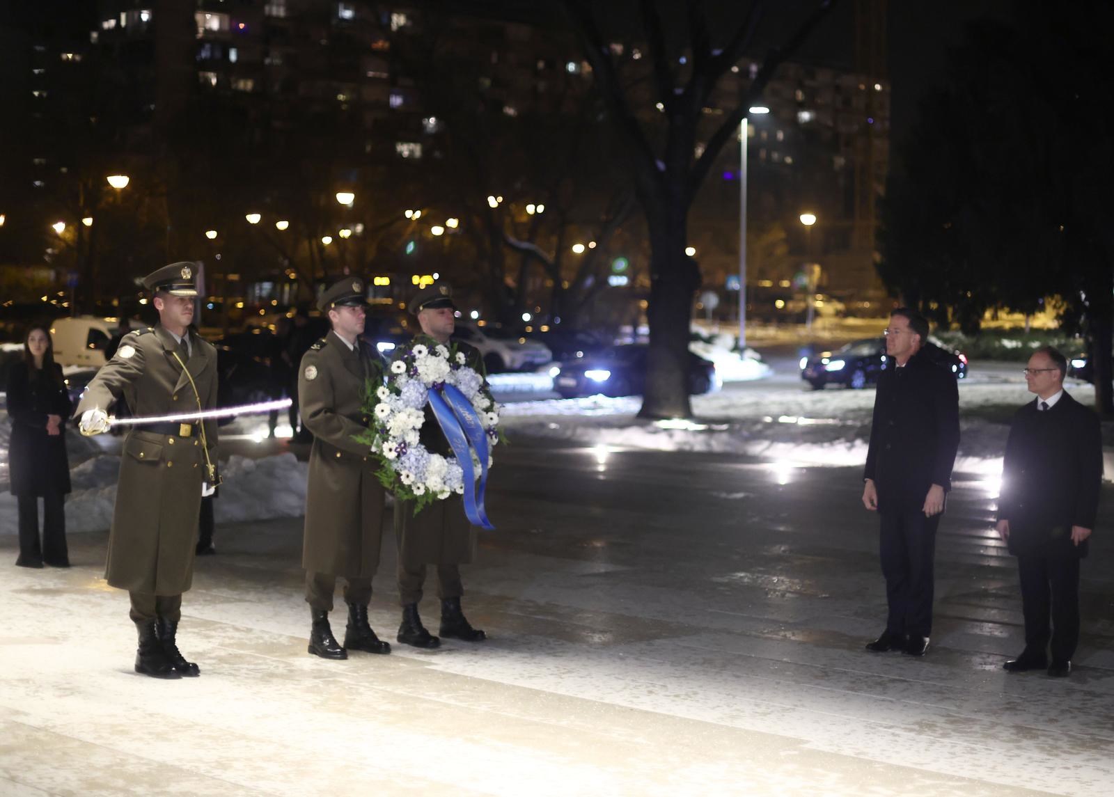 GLAVNI tajnik NATO-a Mark Rutte, koji je u posjetu Hrvatskoj, položio je večeras vijenac kod Spomenika domovini u Zagrebu.