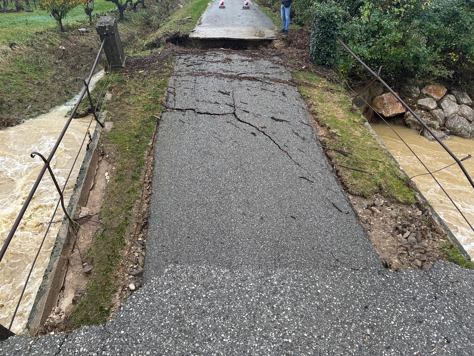 U Goriškim brdima odroni su zatrpali više prometnica, a jedan je most u potpunosti uništen. Velika šteta nanesena je i elektroenergetskoj infrastrukturi. U Višnjeviku je odron odnio betonski stup dalekovoda, zbog čega je bez struje ostalo oko 200 korisnika. U Šlovrencu je klizište pomaknulo drugi stup, pa je bez napajanja još 80 kućanstava.